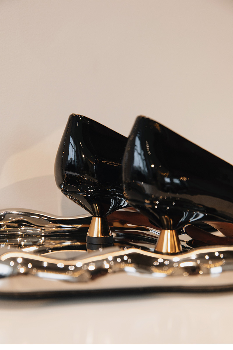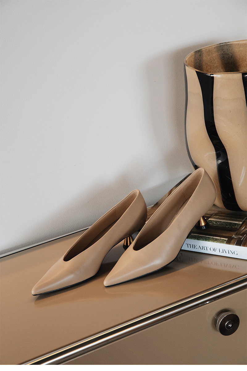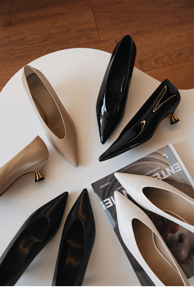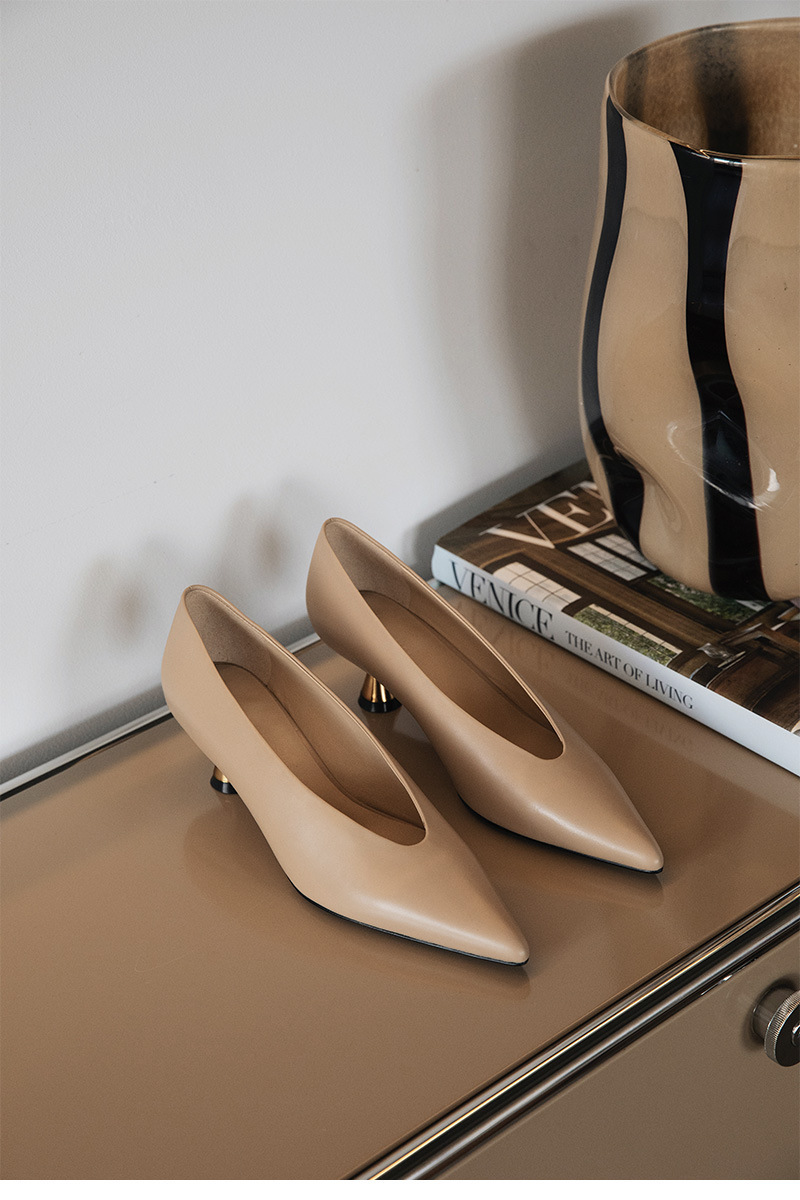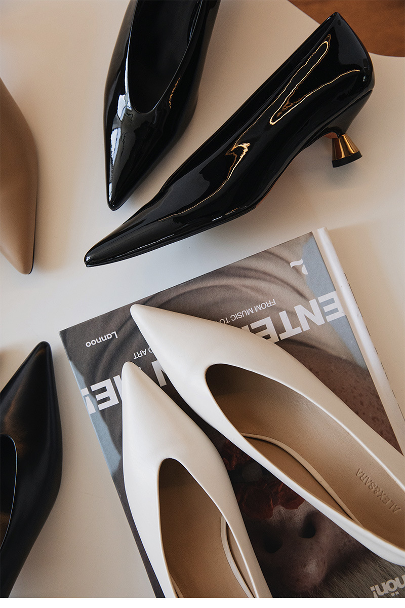 고급 기질 틈새 ~ 2024 년 이른 봄 새로운 뾰족한 깊은 V 새끼 고양이 다큐멘터리 신발 특허 가죽 낮은 발 뒤꿈치 여성 신발