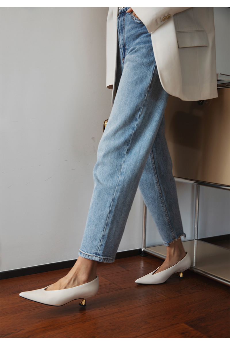 고급 기질 틈새 ~ 2024 년 이른 봄 새로운 뾰족한 깊은 V 새끼 고양이 다큐멘터리 신발 특허 가죽 낮은 발 뒤꿈치 여성 신발스토어 가기