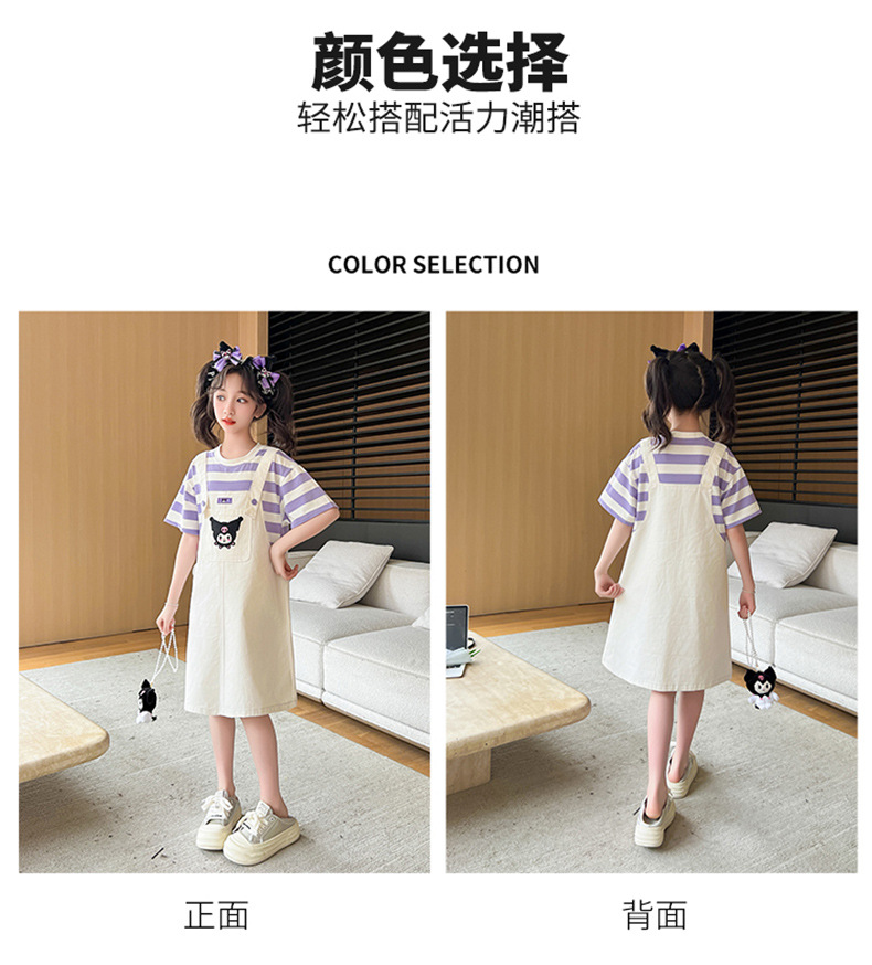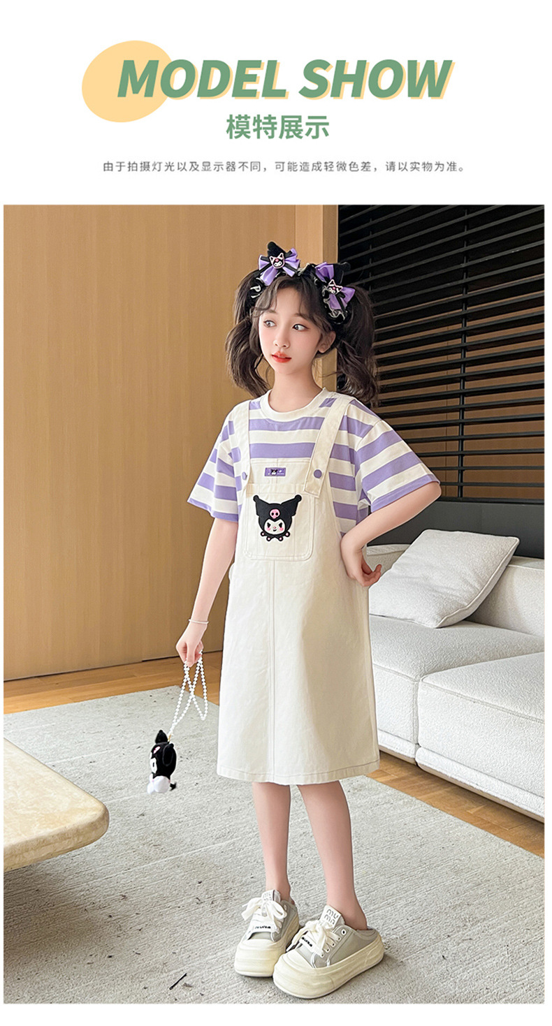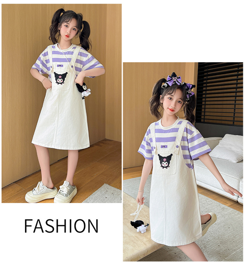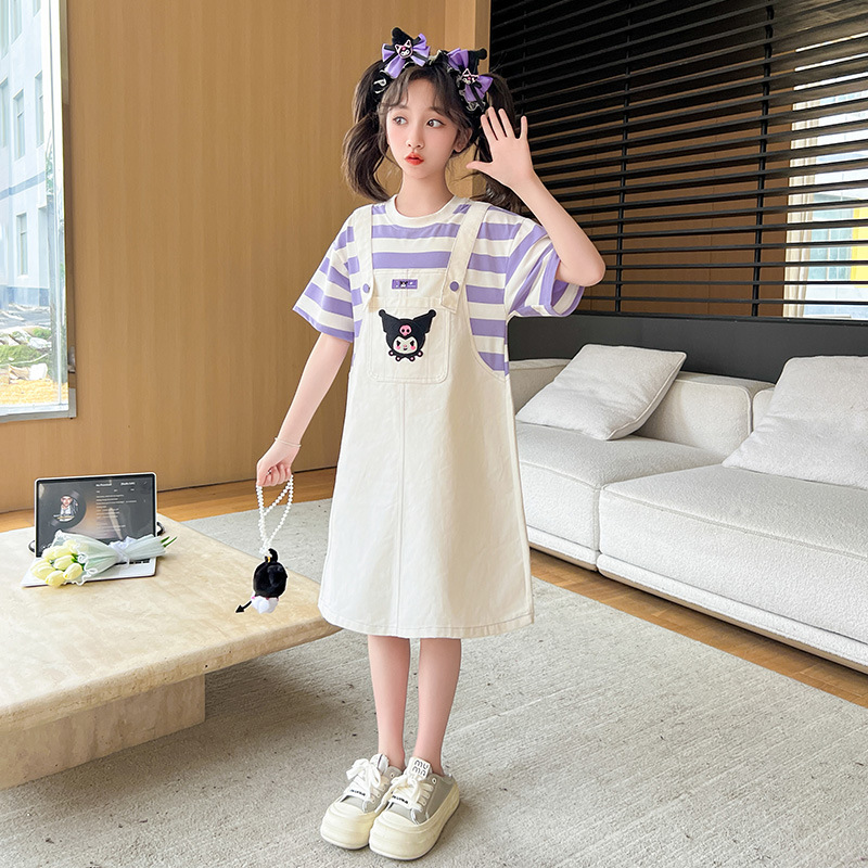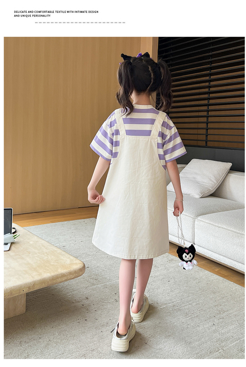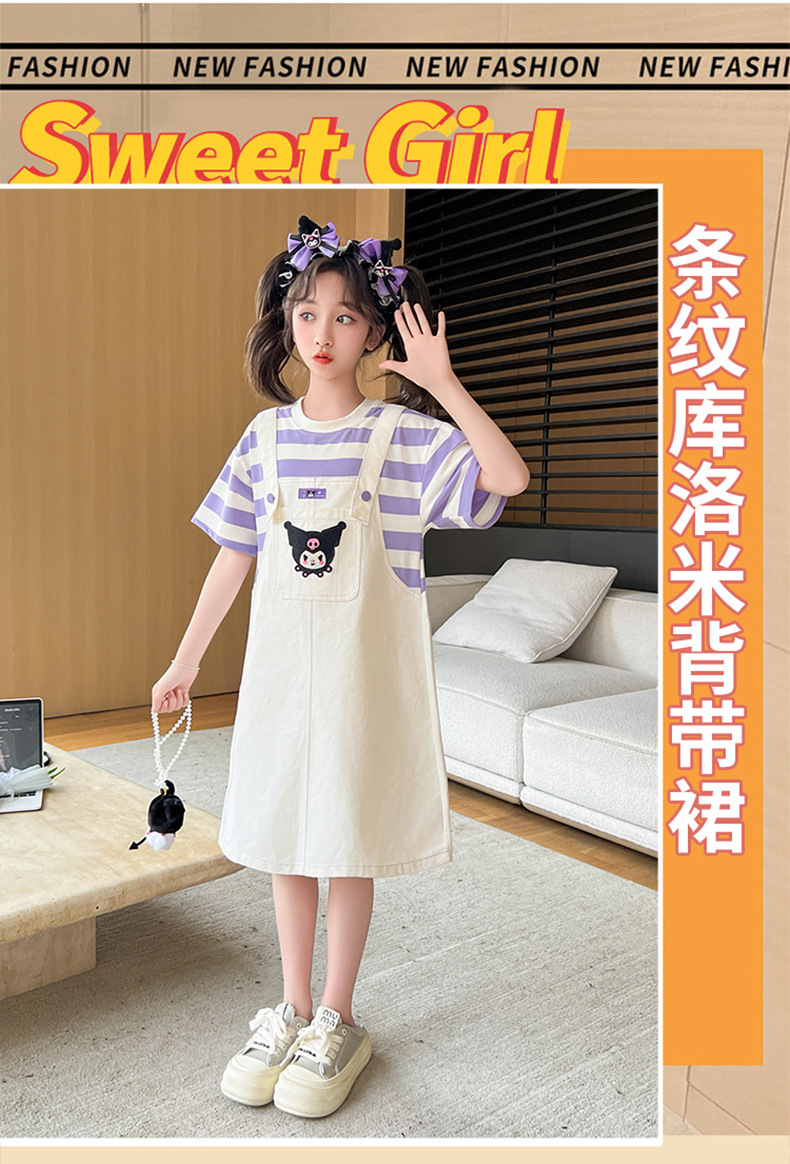 Kouromi 원피스 소녀의 가짜 투피스 스트랩 원피스 여름 원피스 서양식 어린이 반팔 옷 여성 중 큰 어린이 치마