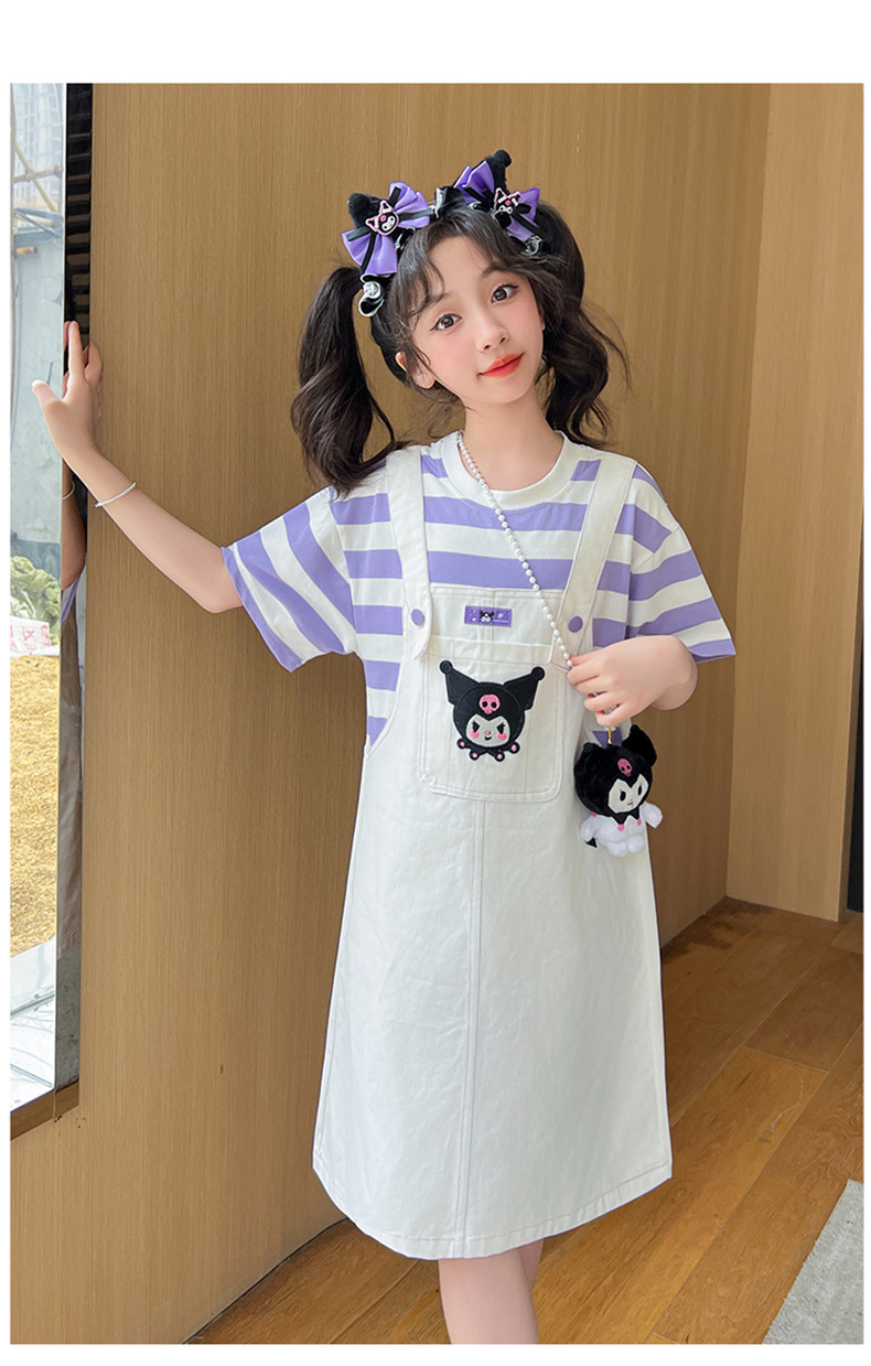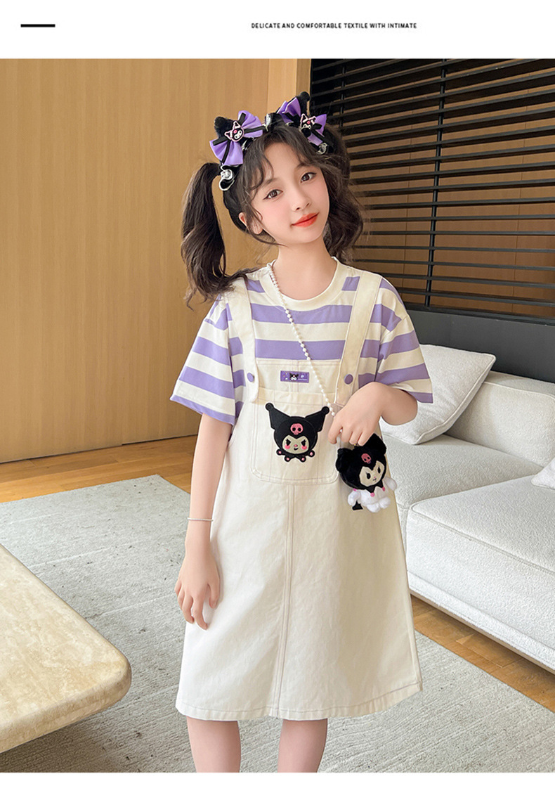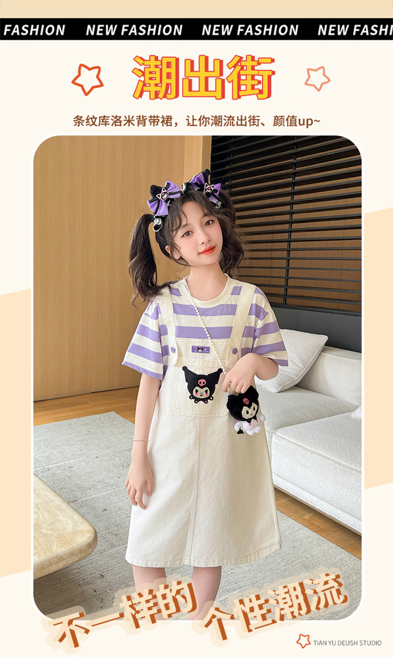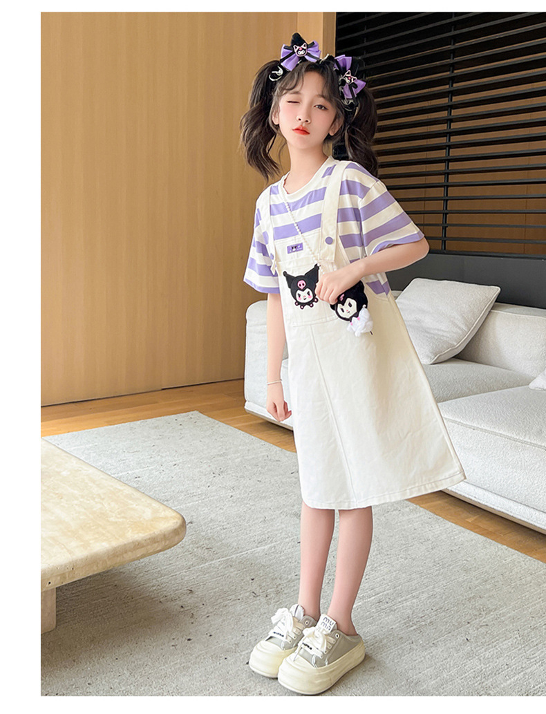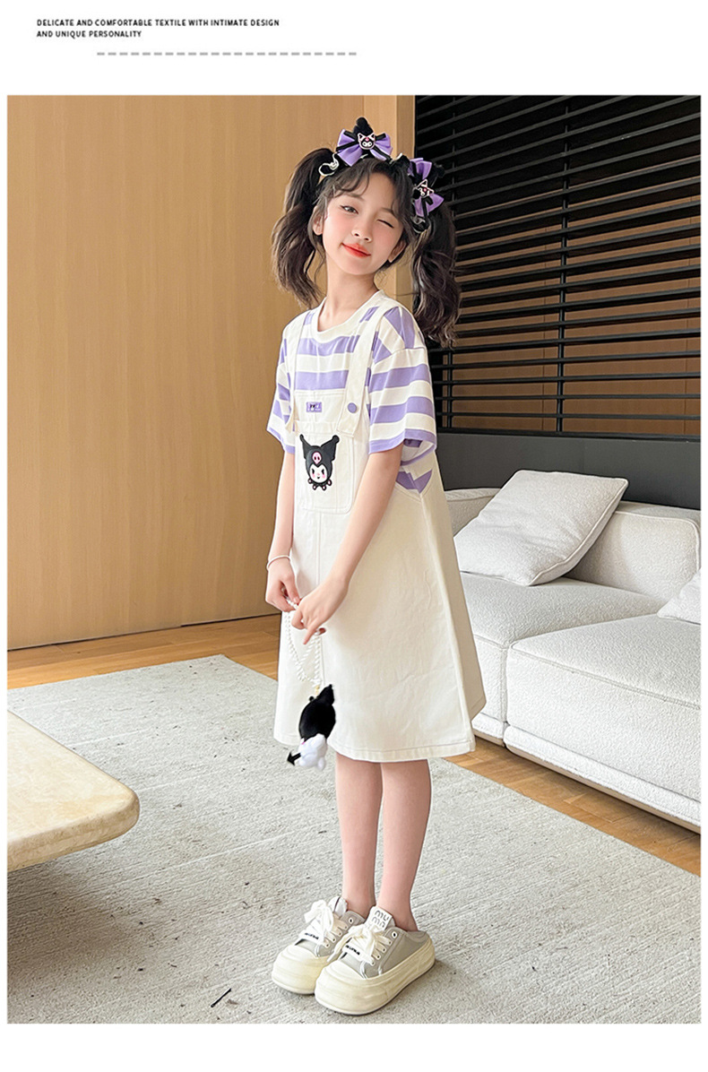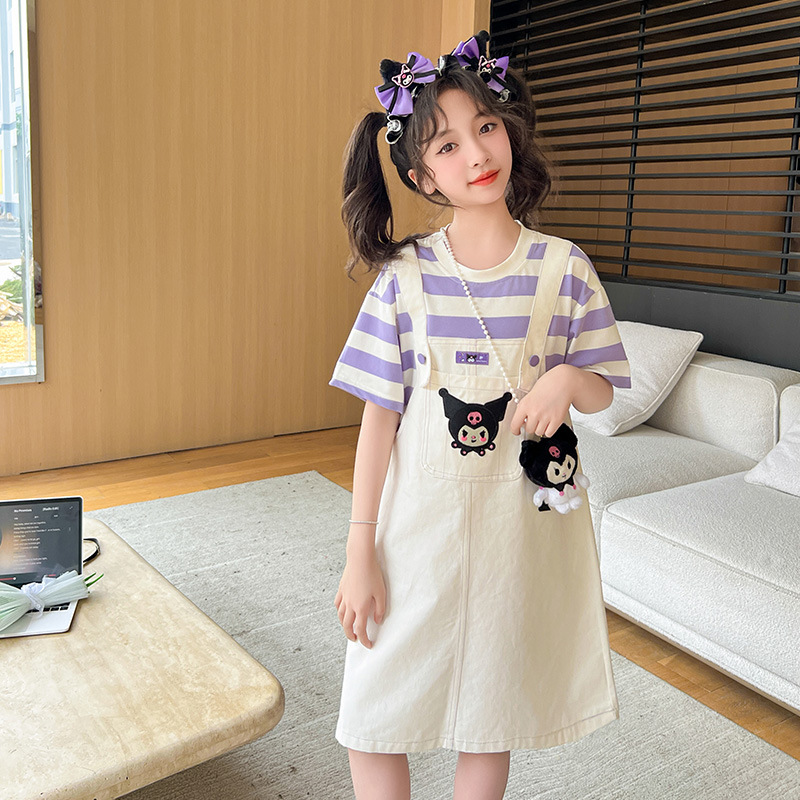 Kouromi 원피스 소녀의 가짜 투피스 스트랩 원피스 여름 원피스 서양식 어린이 반팔 옷 여성 중 큰 어린이 치마