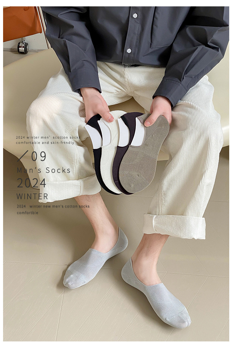 남성 봄과 여름 새로운 단색 보이지 않는 양말 도매 빗질면 통기성 보트 양말 통기성 남성 양말과 함께 떨어지지 않습니다.스토어 가기