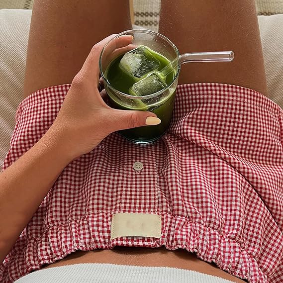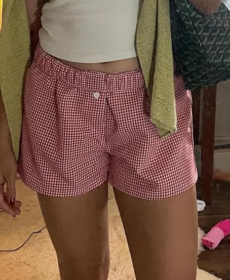 2024 새로운 크로스 보더 AliExpress 여름 반바지 여성 캐주얼 편안한 높은 허리 느슨한 넓은 다리 빈티지 격자스토어 가기