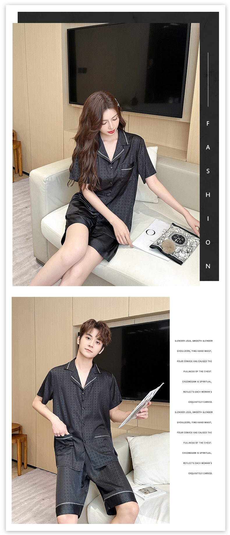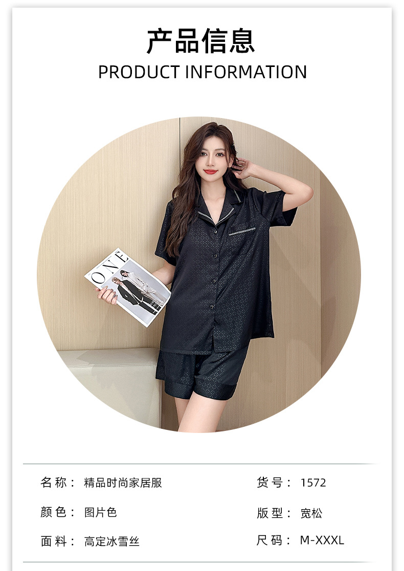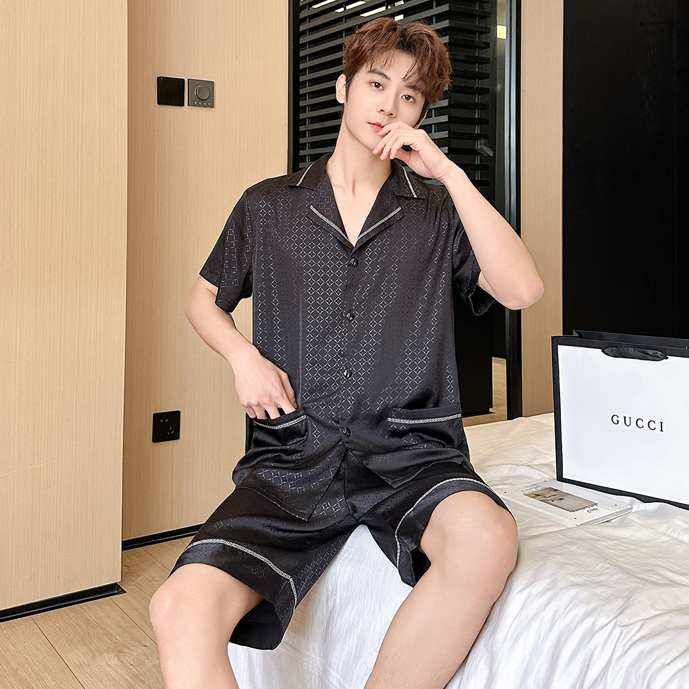아이스 실크 커플 잠옷 여성 여름 얇은 반팔 반바지 자카드 세트 대형 간단한 아이스 실크 남성용 홈 옷스토어 가기