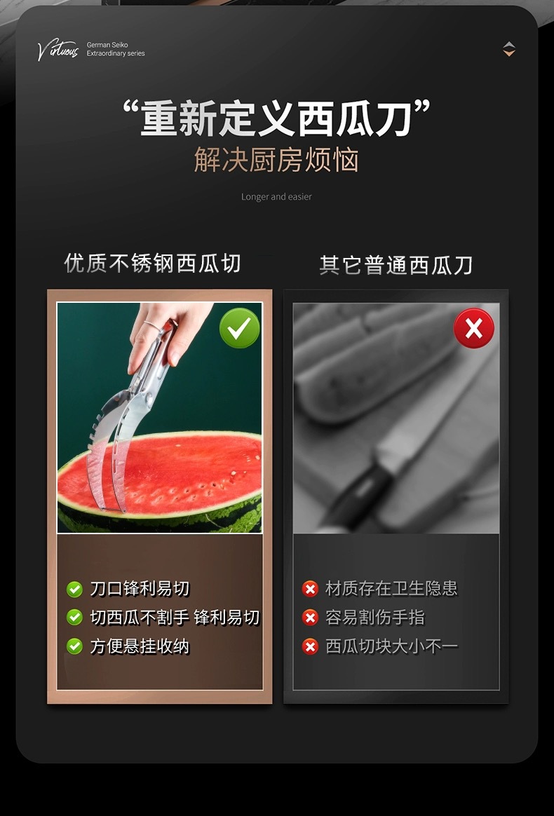 양장 수박 절단 도구 슬라이서 과일 낙서 아티팩트 분할기 과일 칼 다기능 스테인레스 스틸 도구스토어 가기