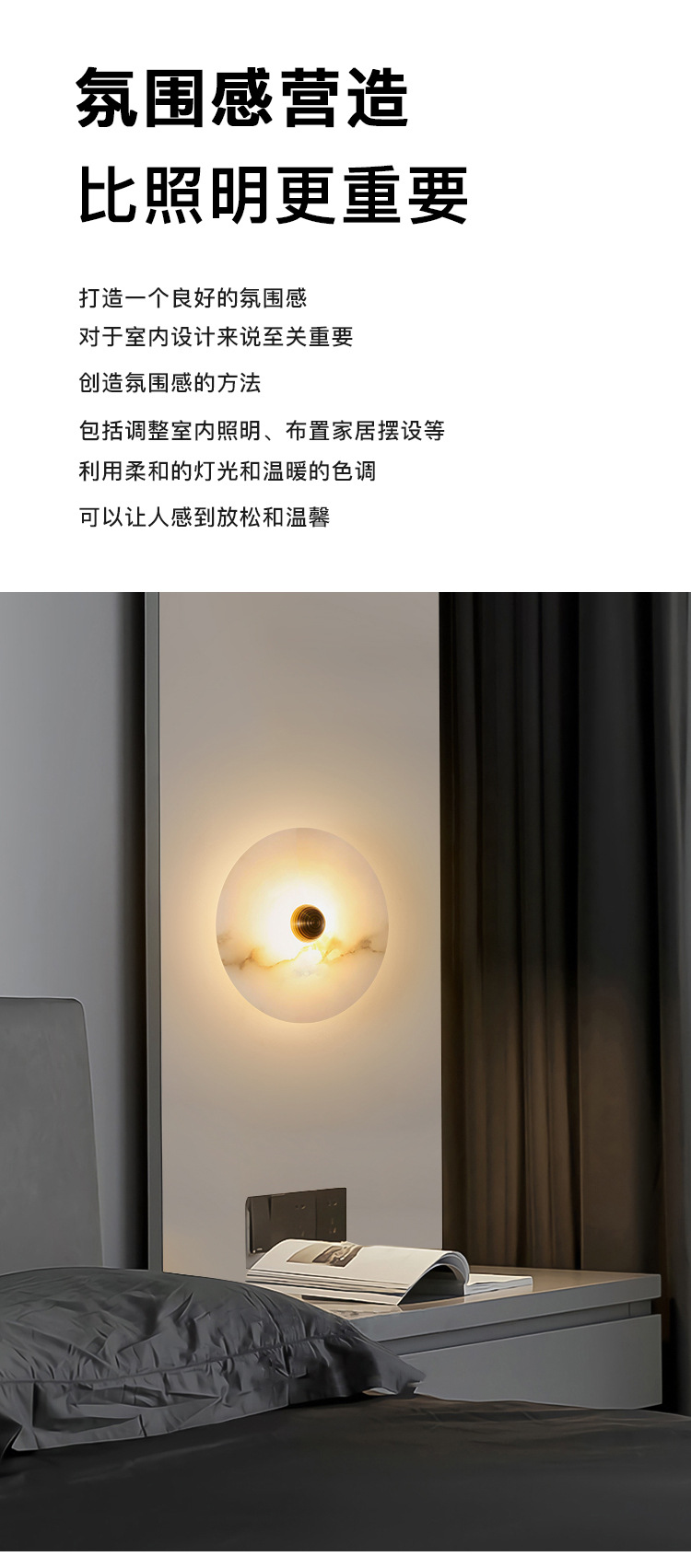 디자이너 스페인 대리석 거실 TV 배경 벽 램프 빛 고급 현대 간단한 창조적 인 침실 침대 옆