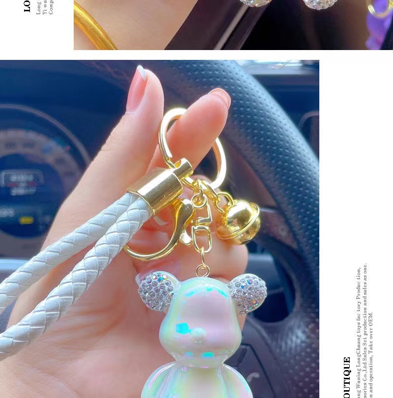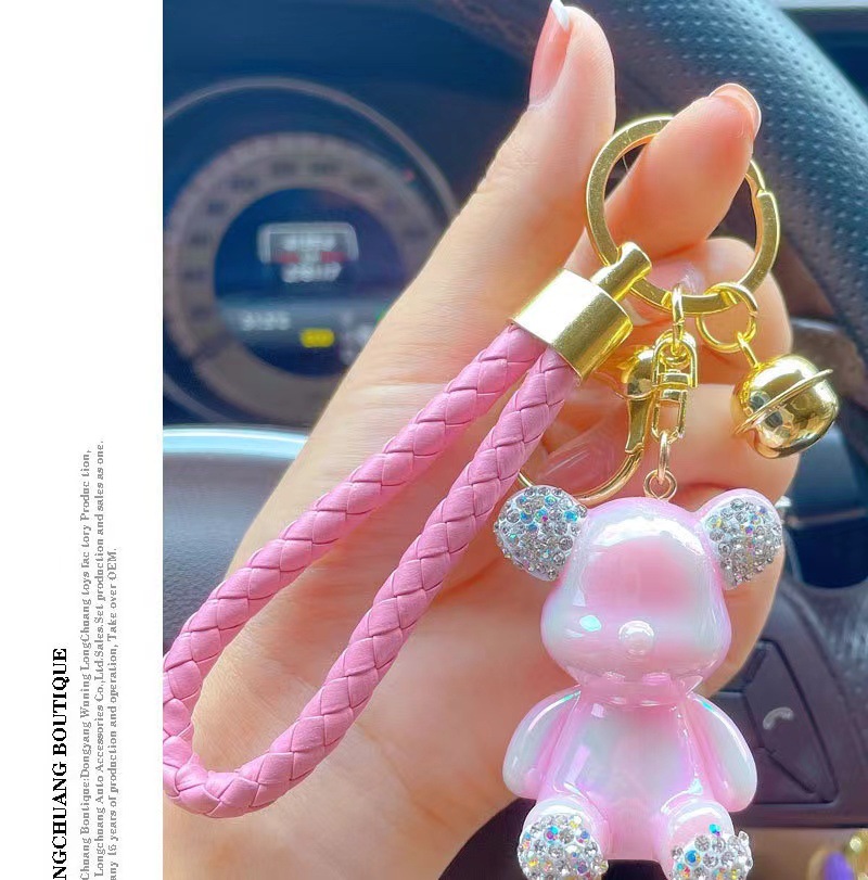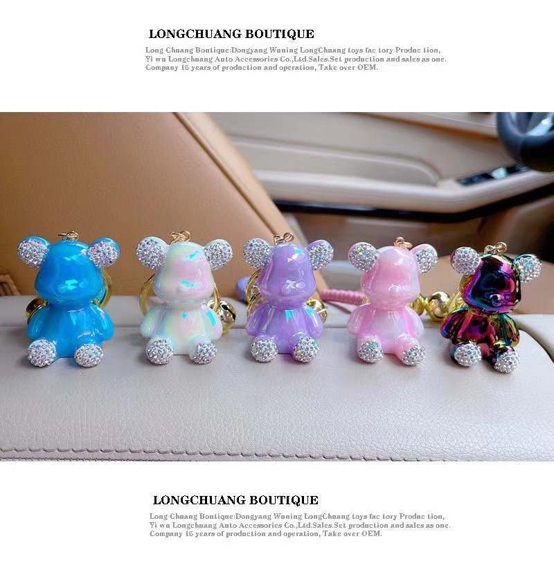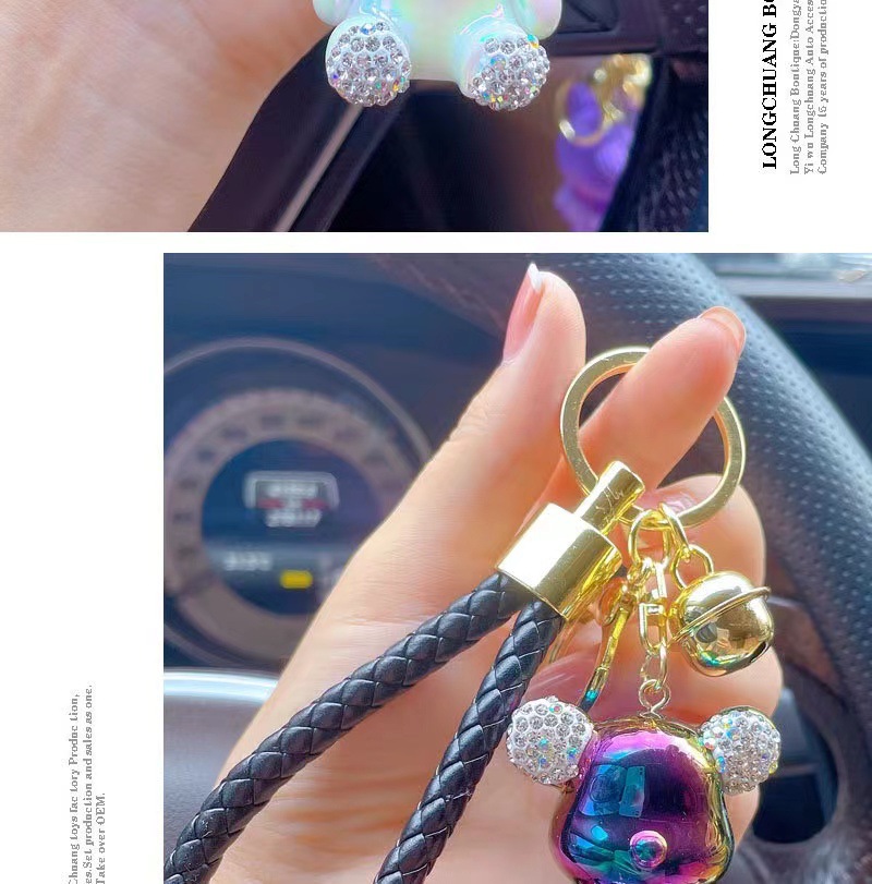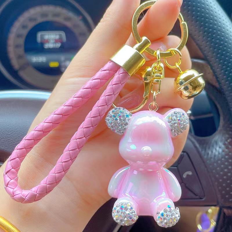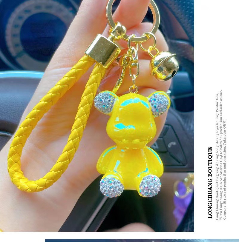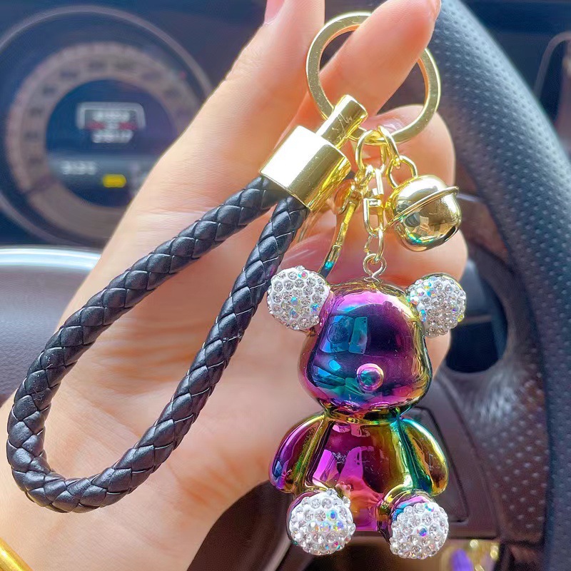 다이아몬드 키 체인 창조적 인 펜던트 패션 키 체인 펜던트 도매 다이아몬드로 장식 된 포도 나무 곰 다채로운 전기 도금 곰