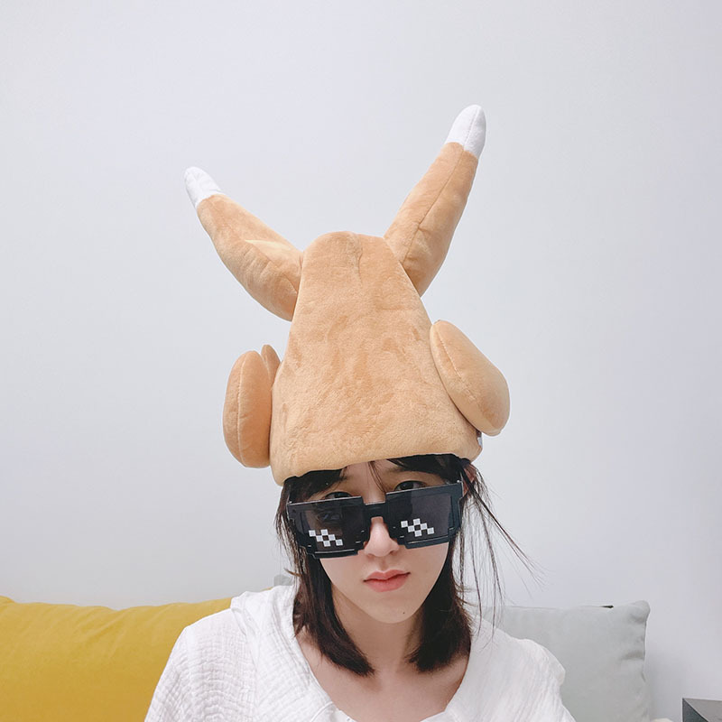 움직이는 닭 다리 모자 헤드 기어 모래 조각 전기 재미있는 만화 귀여운 재미있는 인터넷 빨간 상어 봉제 할로윈스토어 가기