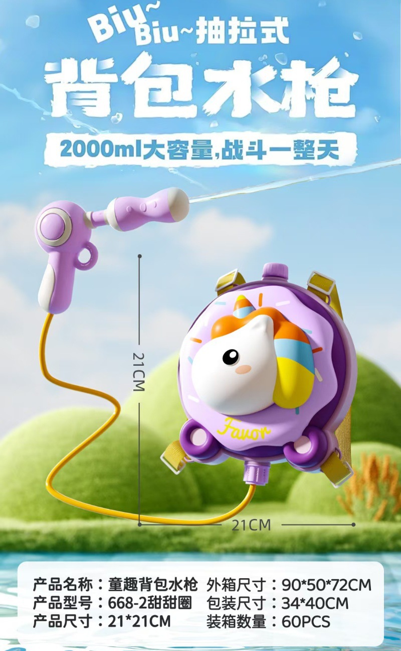 • 668-B 백팩 물총 [업그레이드된 누수방지/2000ml] [색상 랜덤 믹스앤매치]