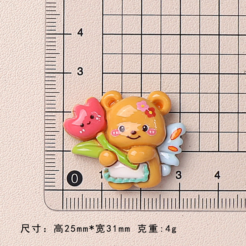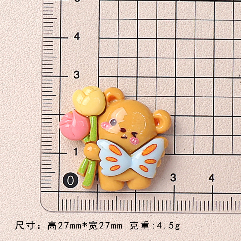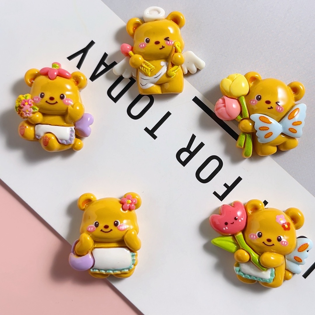 만화 노란색 천사 곰 DIY 수지 액세서리 수제 헤어핀 휴대 전화 쉘 키 체인 스티커 만들기