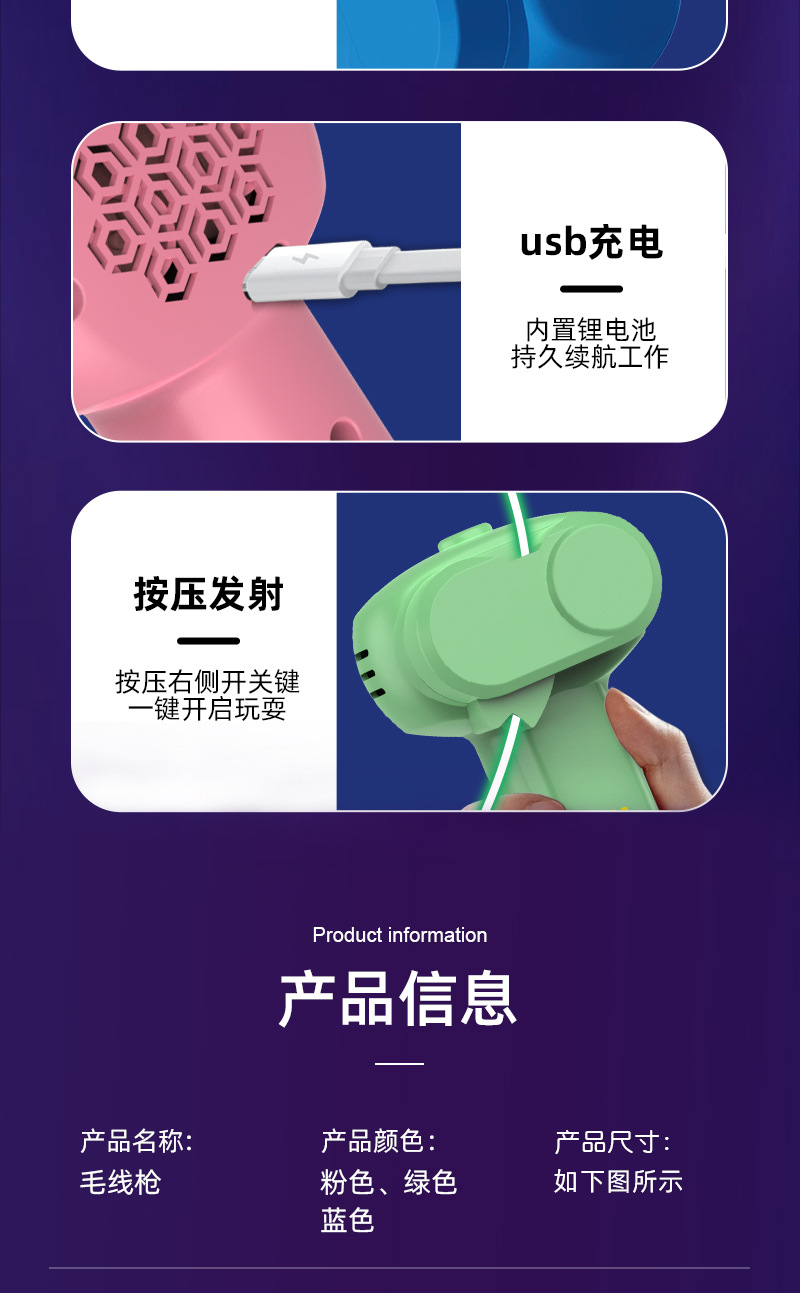 국경 간 트레몰로 폭발 로프 런처 전기 빛나는 창조적 인 재미있는 고양이 장난감을 충전하는 양모 총을 재생스토어 가기