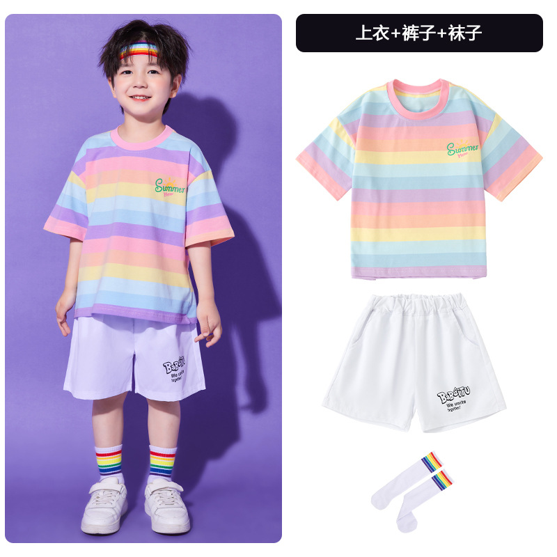 • DL10 컬러 스트라이프 티셔츠 D02 화이트 블랙 반바지 컬러 스트라이프 헤어 밴드 컬러 스트라이프 튜브 양말
