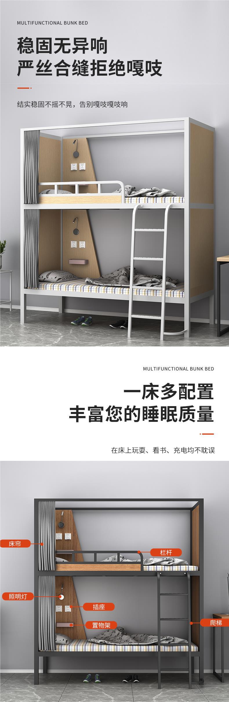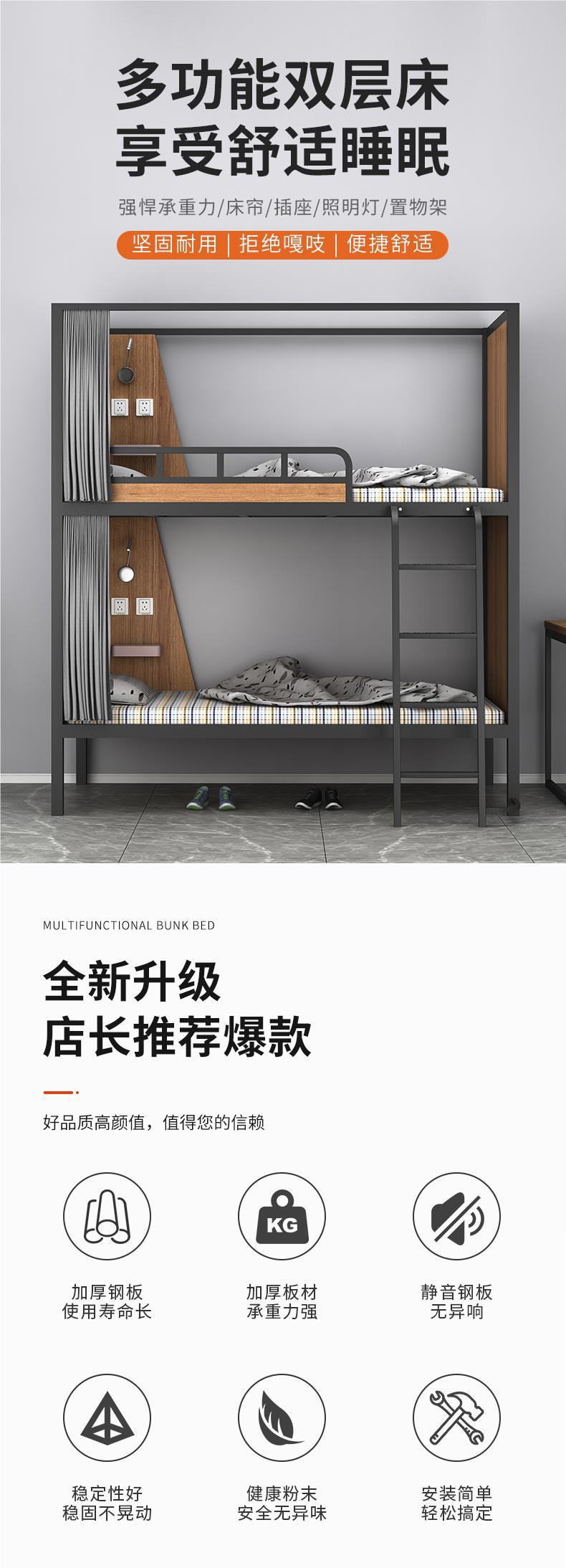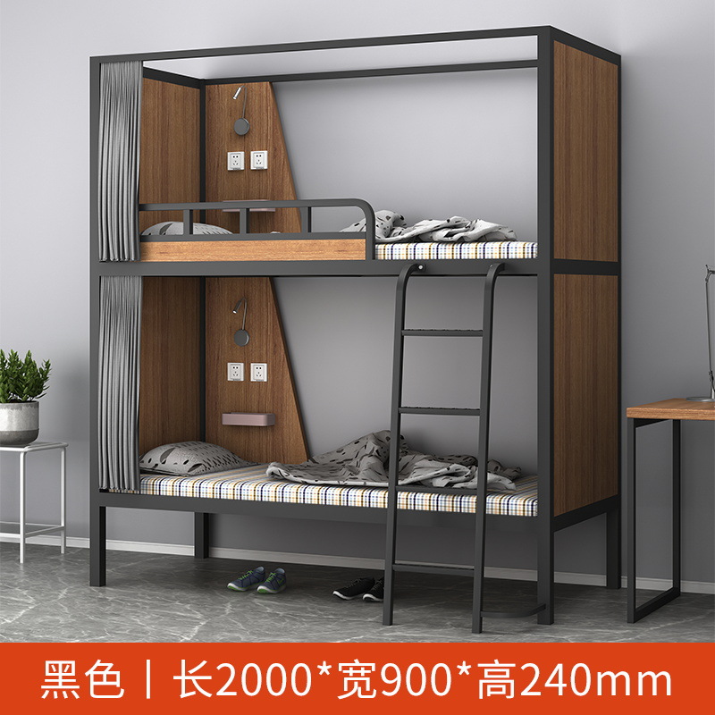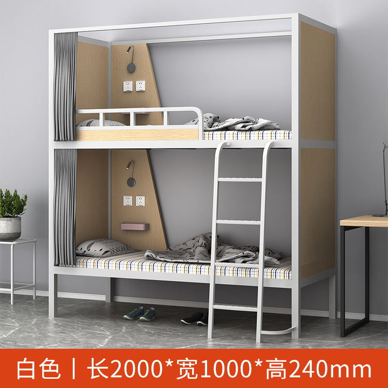 새로운 침대 이층 침대 철 프레임 침대 학생 기숙사 높고 낮은 침대 아파트 소켓 테이블 램프가있는 스틸 프레임 침대