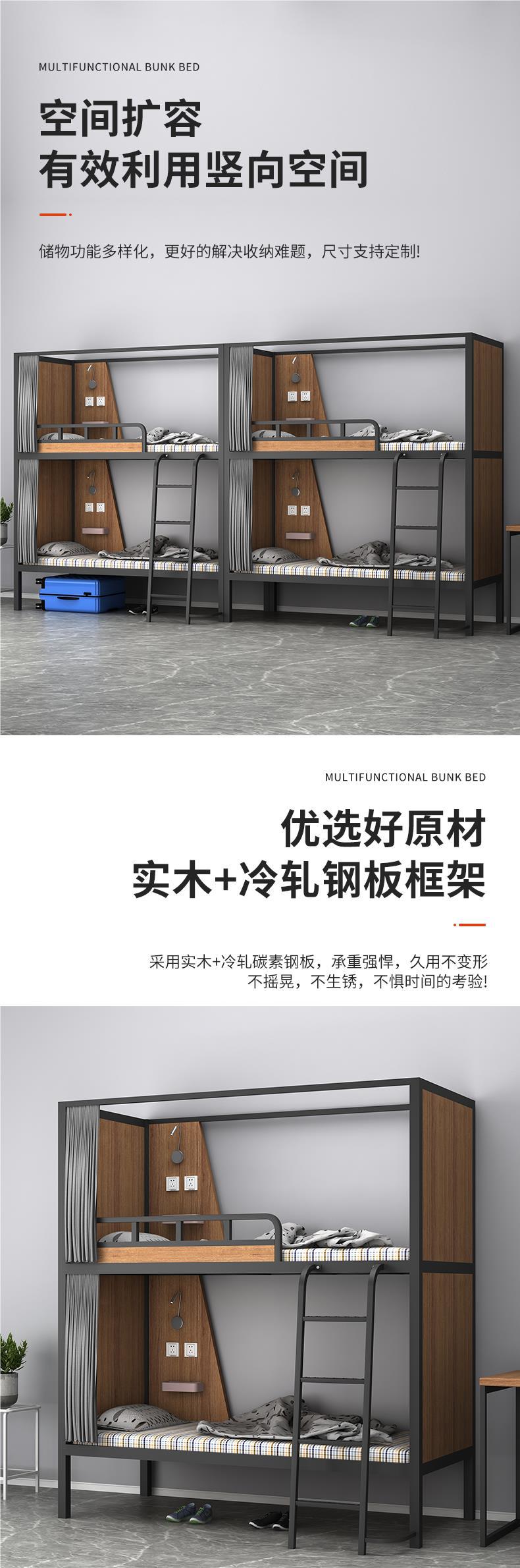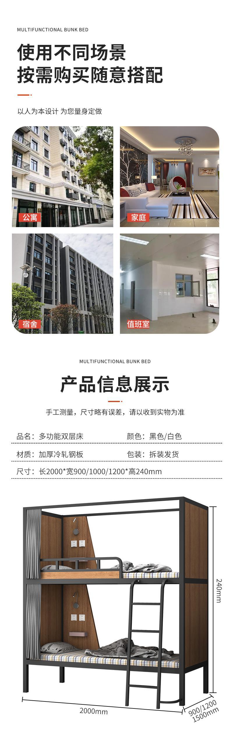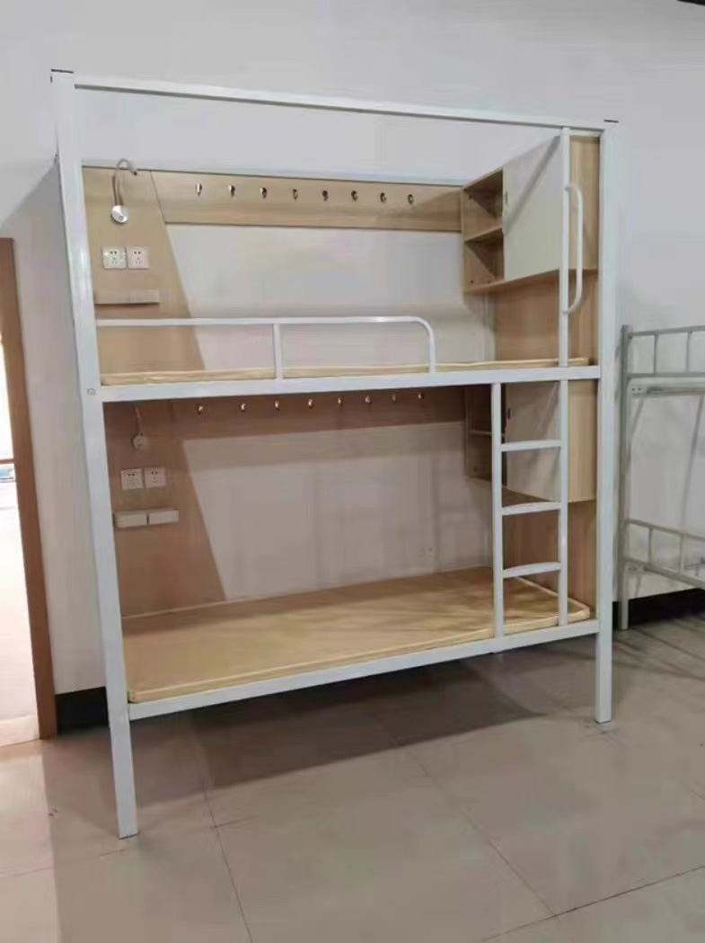 새로운 침대 이층 침대 철 프레임 침대 학생 기숙사 높고 낮은 침대 아파트 소켓 테이블 램프가있는 스틸 프레임 침대