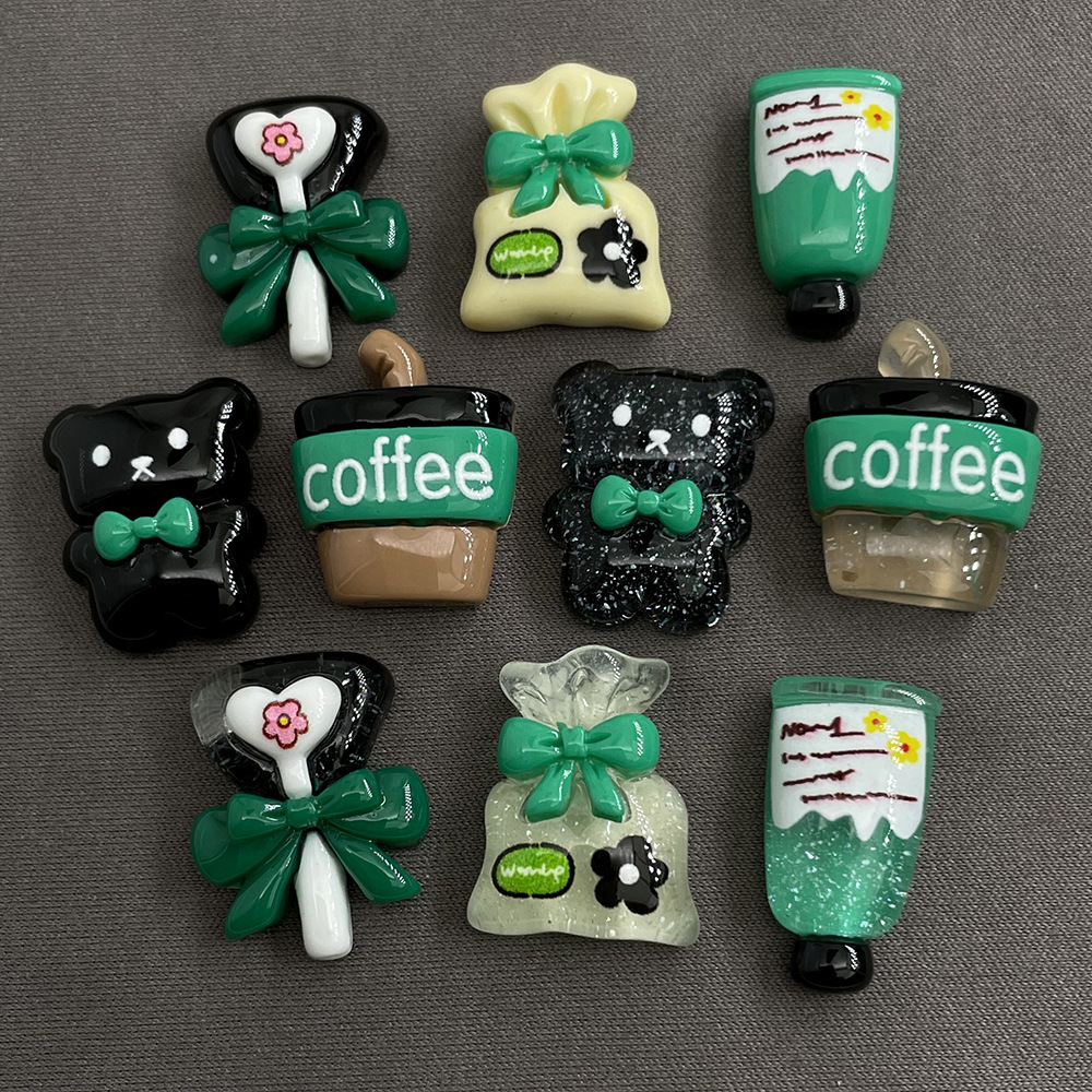 귀여운 벅 그린 커피 컵 곰 세트 DIY 수지 액세서리 수제 헤어핀 키 체인 전화 케이스