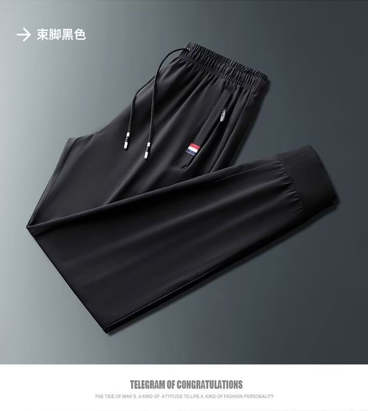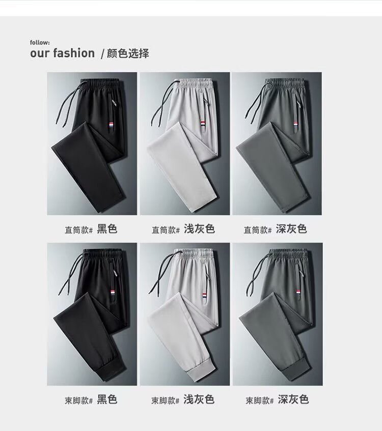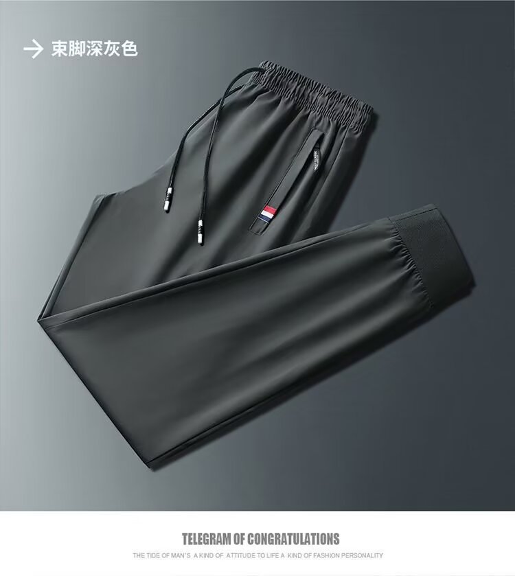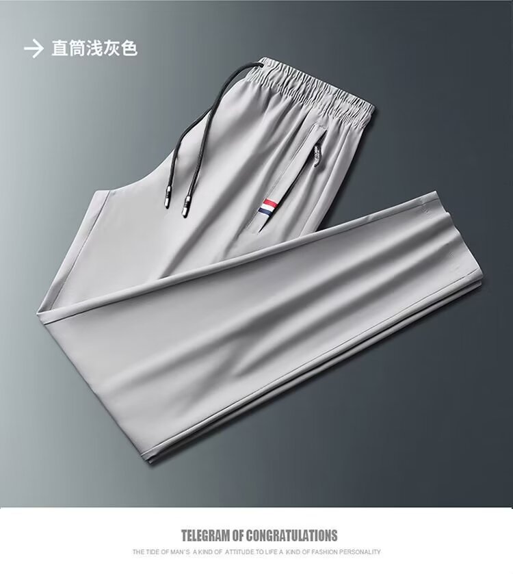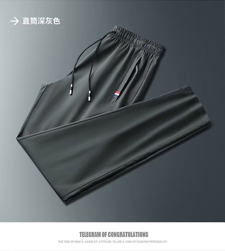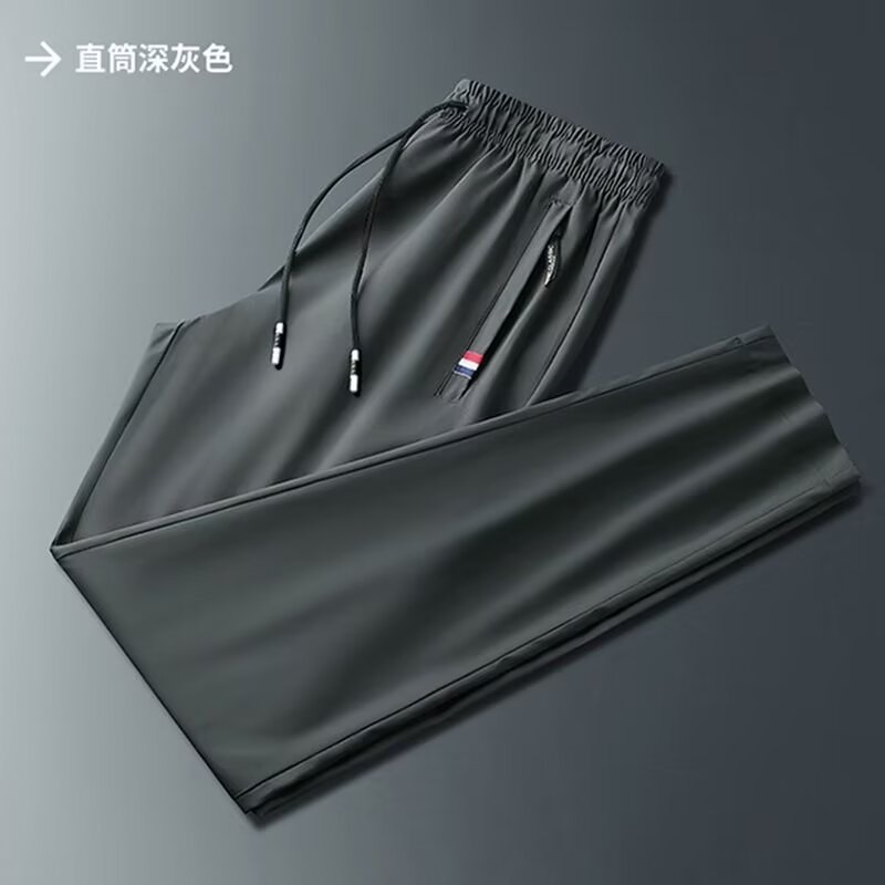 스트레이트 남자 캐주얼 바지 바지 청소년 인기있는 해 2024 여름 새로운 아이스 실크 바지 스포츠 바지
