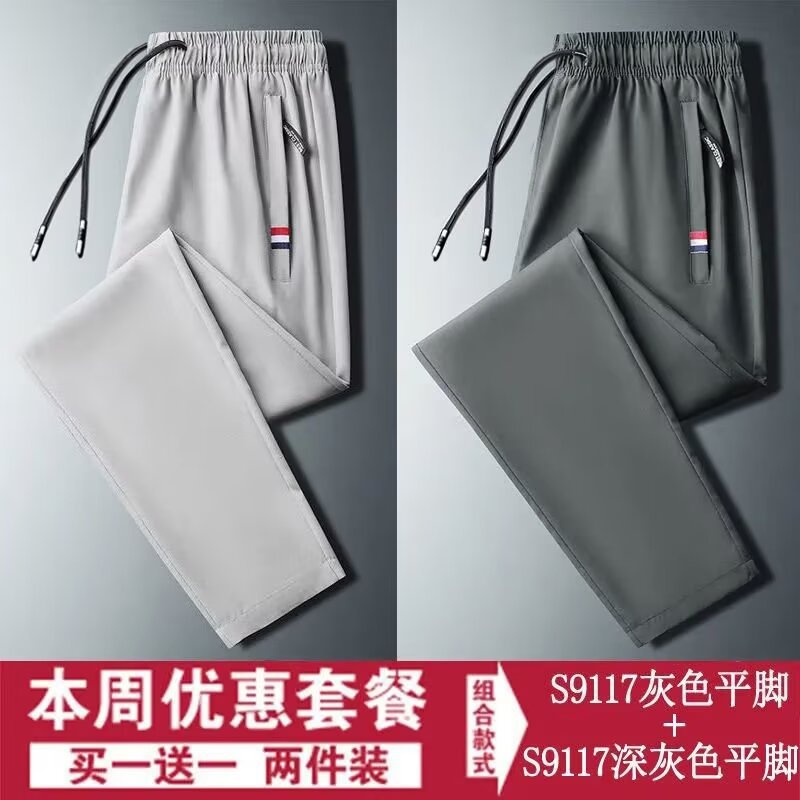 스트레이트 남자 캐주얼 바지 바지 청소년 인기있는 해 2024 여름 새로운 아이스 실크 바지 스포츠 바지스토어 가기