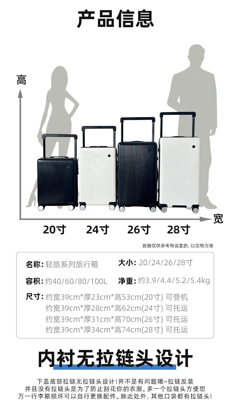 일본으로 수출 두꺼운 와이드 타이로드 수하물 라이트 톤 유니버설 휠 수하물 YKK 지퍼 여행 수하물 남녀