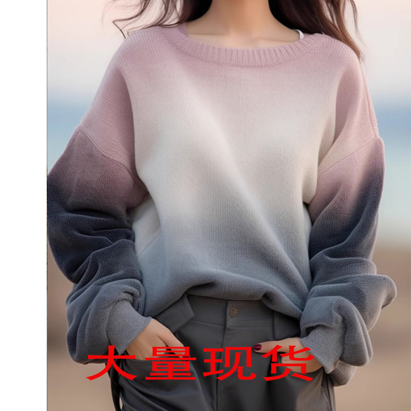 카운터, 정품 여성 의류 컷 라벨 클리어런스를 철회하여 누출 타이 다이 크루 넥 스웨터 가을과 겨울 게으른 스타일 니트 탑