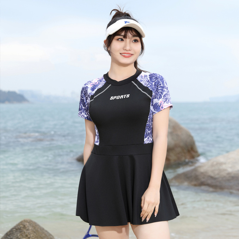 새로운 플러스 사이즈 수영복 여성의 보수적 인 5 점 바지 하이 웨이스트 스커트 슬림 고기 덮인 온천 200kg 수영복스토어 가기