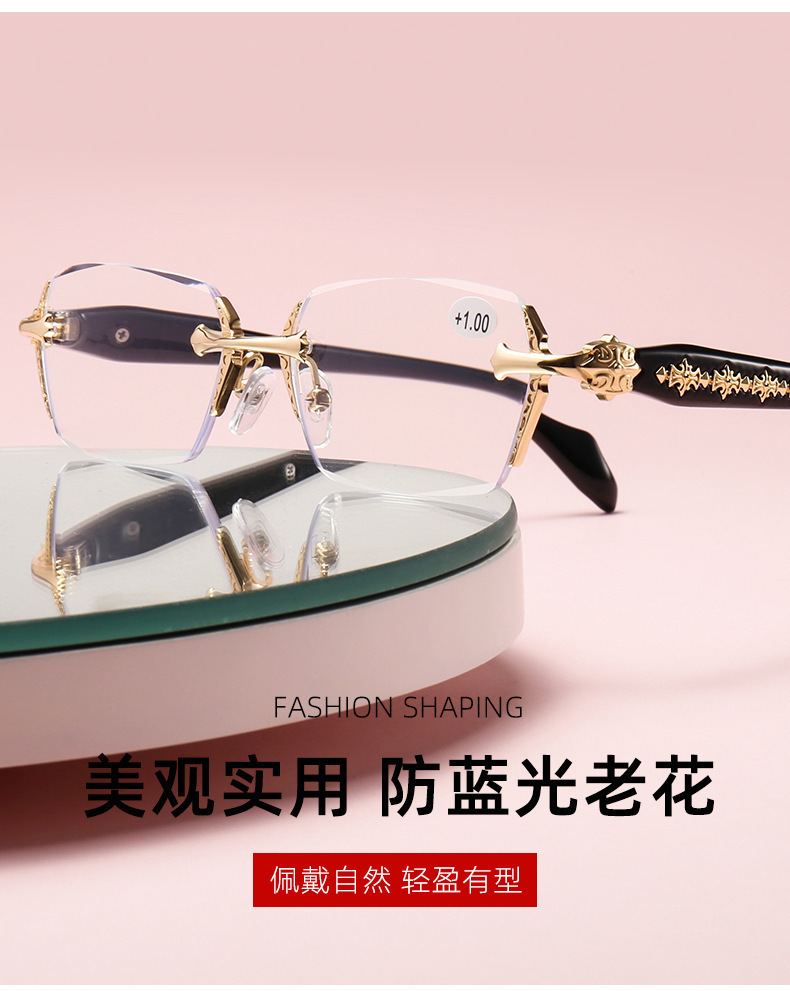 스마트 줌 레트로 프레임리스 슬릿 노회 안경 HD 안티 블루 라이트 Senile Sight 미러 중년 독서 안경 도매