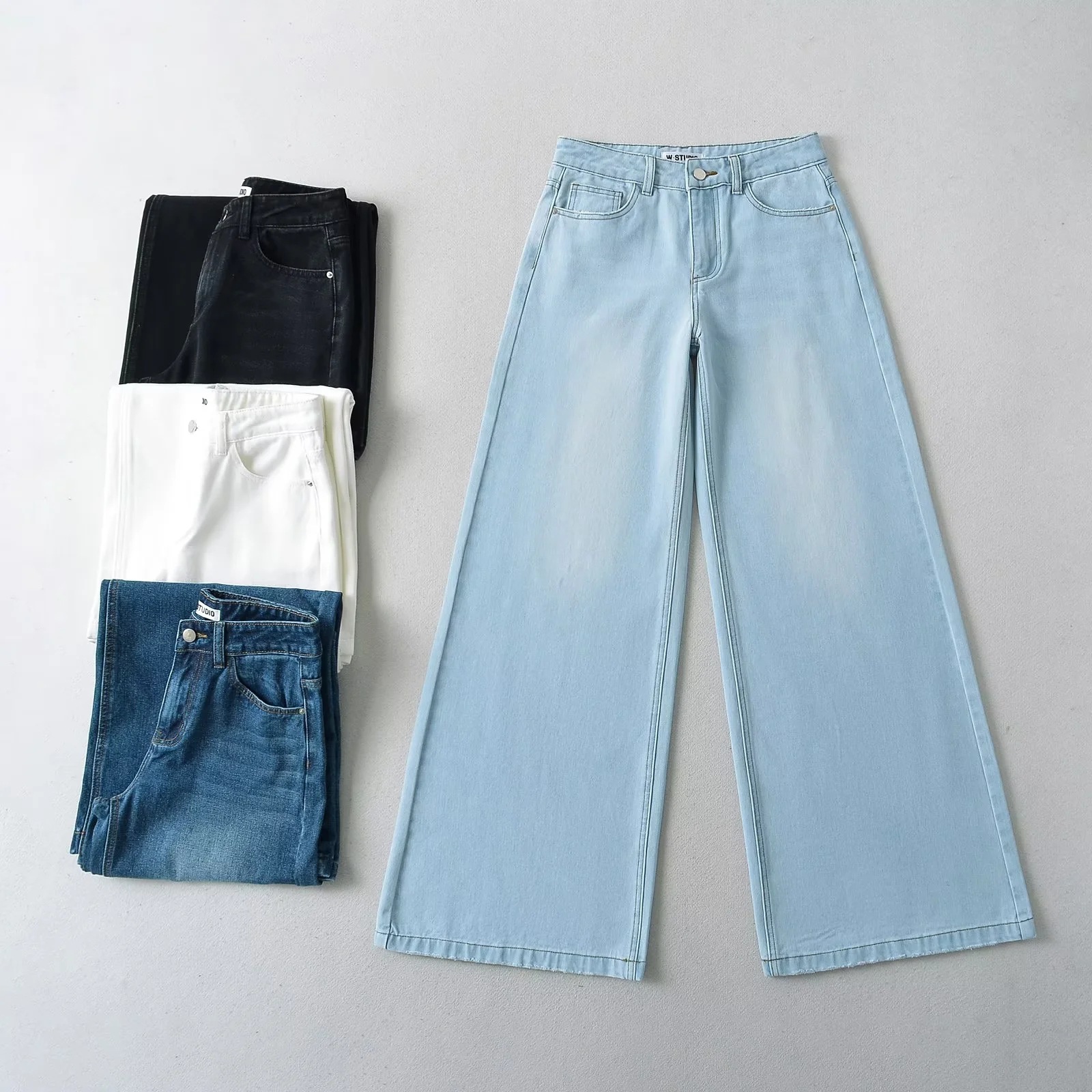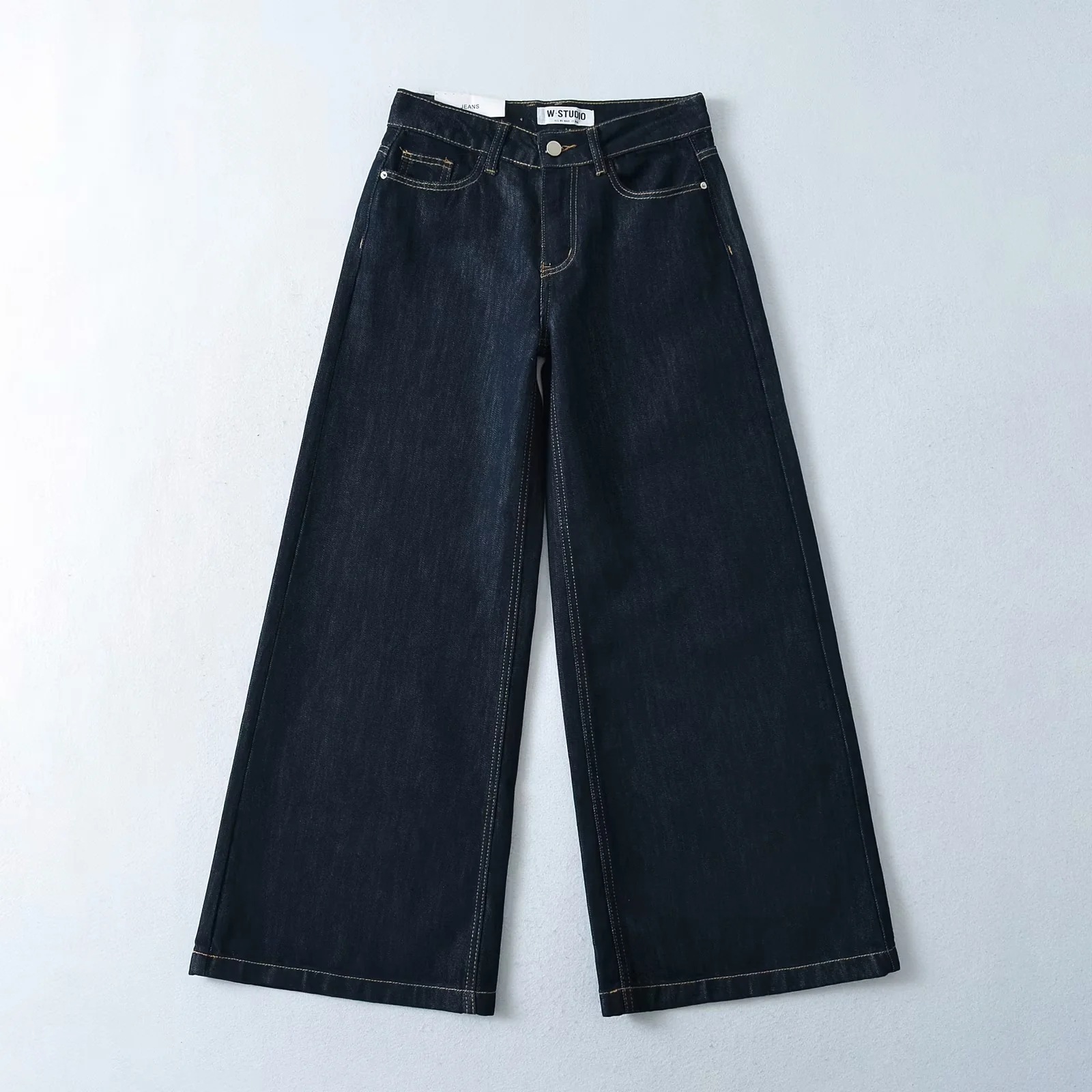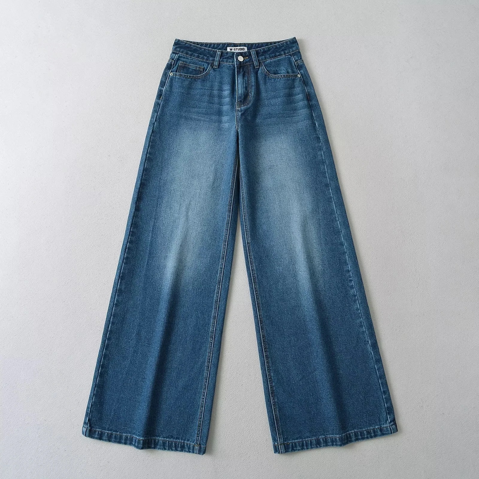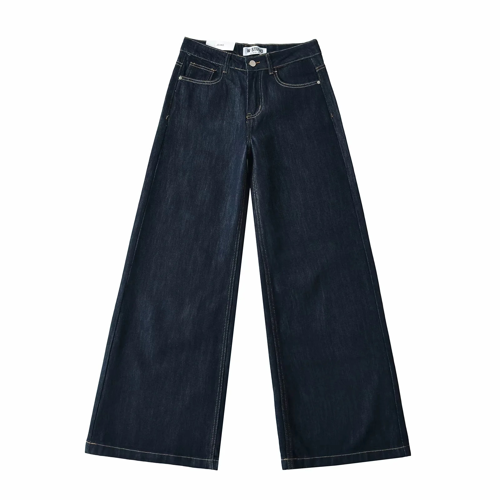 American Style INS Hot Girls 낮은 허리 느슨한 슬림 와이드 레그 청바지 여성용 세척 올 매치 데님 플레어 바지