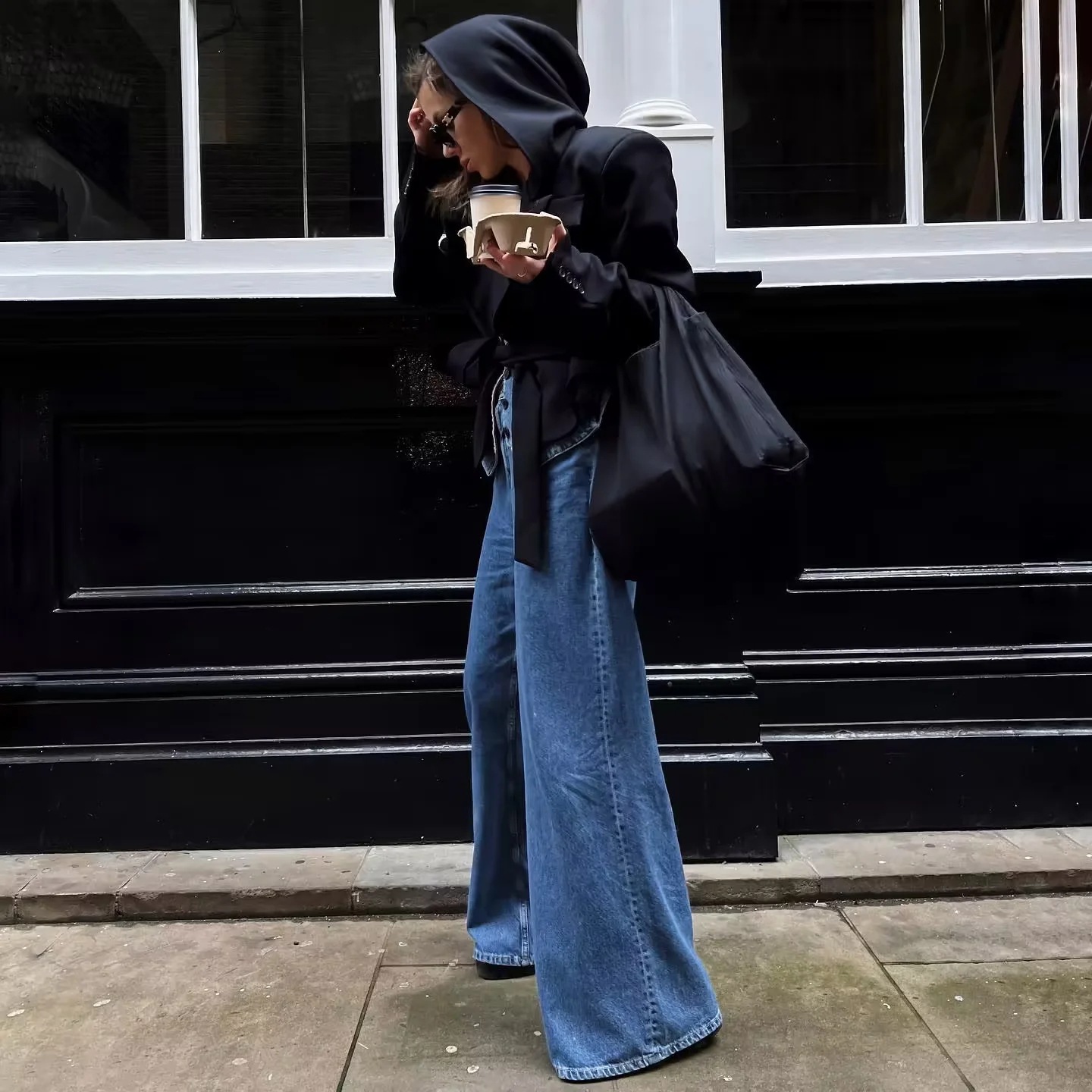 American Style INS Hot Girls 낮은 허리 느슨한 슬림 와이드 레그 청바지 여성용 세척 올 매치 데님 플레어 바지스토어 가기