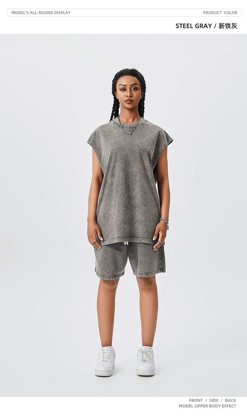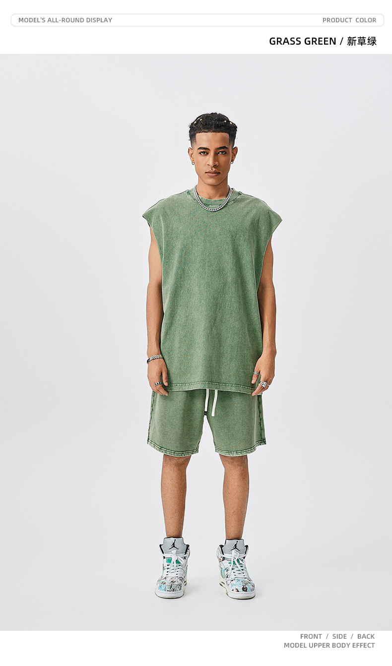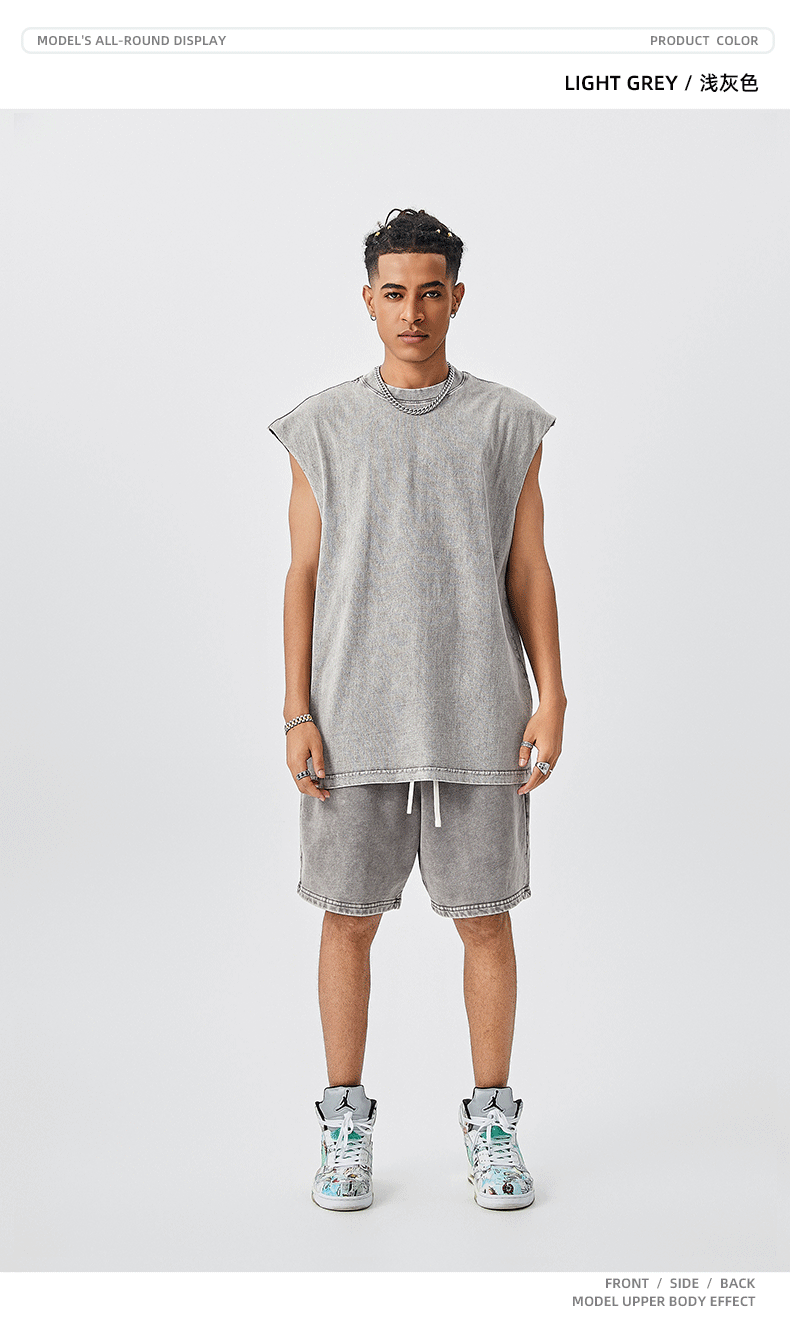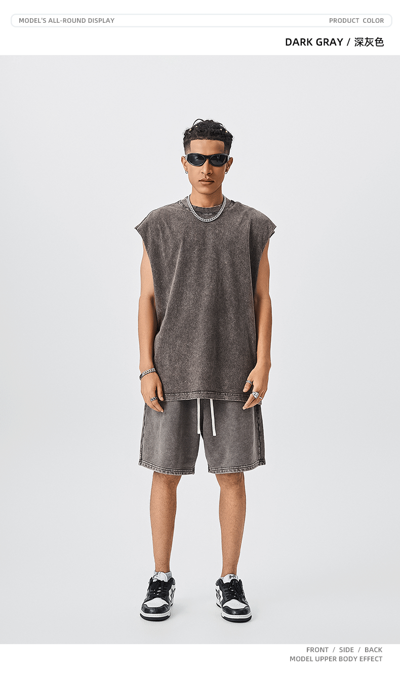 TILANI 남성 유럽과 미국의 스트리트 패션 양복 조끼 캐주얼 조끼 여름 코튼 티셔츠 루즈 에지 바닥 민소매 셔츠스토어 가기