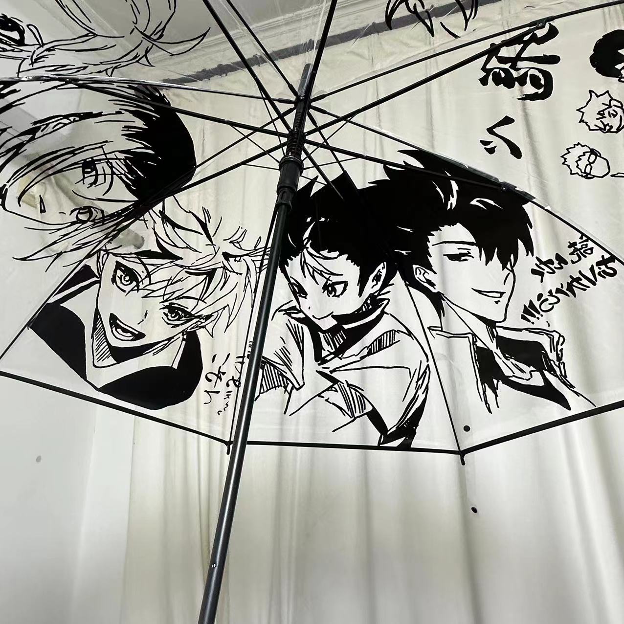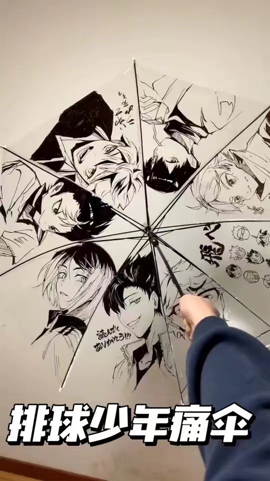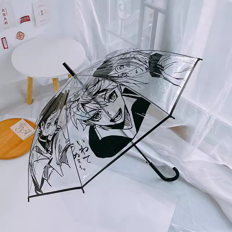 TikTok 창조적 인 배구 청소년 통증 우산 자동 투명 우산 사이버 인기 만화 귀여운 접는 애니메이션 반자동 우산스토어 가기
