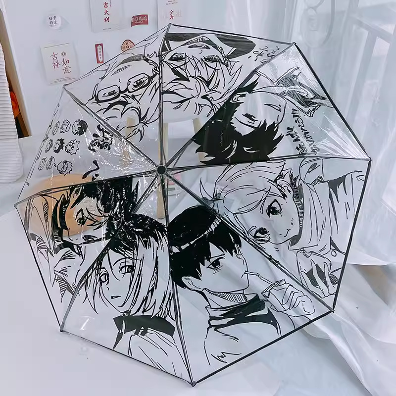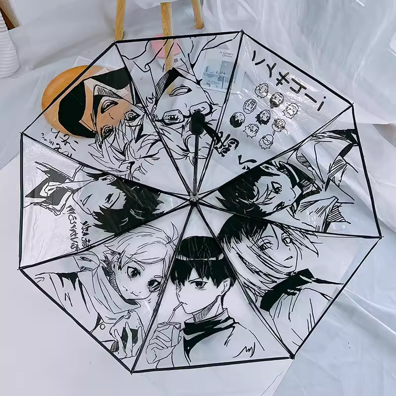 TikTok 창조적 인 배구 청소년 통증 우산 자동 투명 우산 사이버 인기 만화 귀여운 접는 애니메이션 반자동 우산