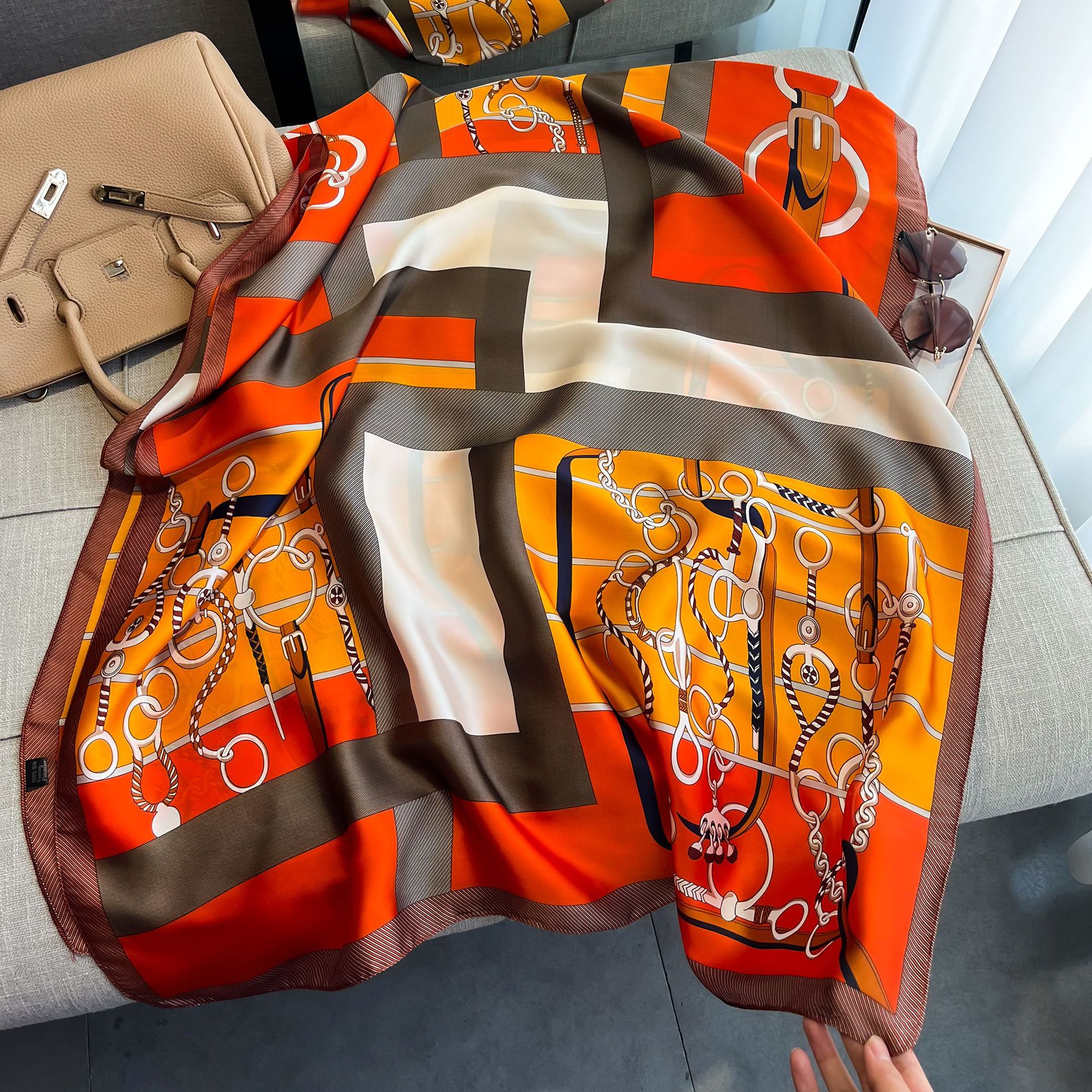 여름 새로운 체인 실크 스카프 여성용 기질 스카프 방풍 목도리 스카프 비치 타월