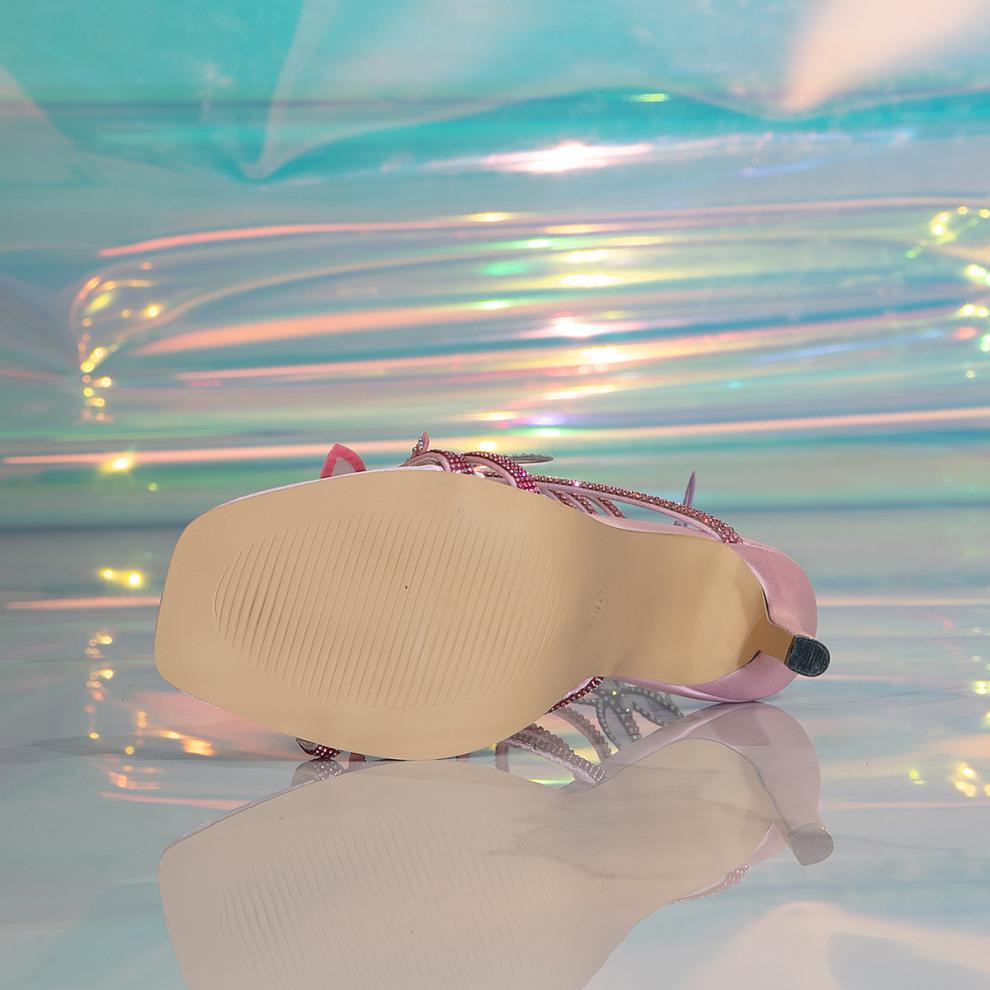 2025 스네이크 랩 오픈 발가락 라인스톤 플래시 활 얇은 힐 하이힐 섹시한 샌들 여성용 신발