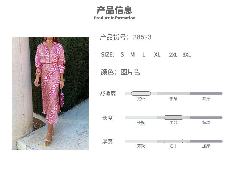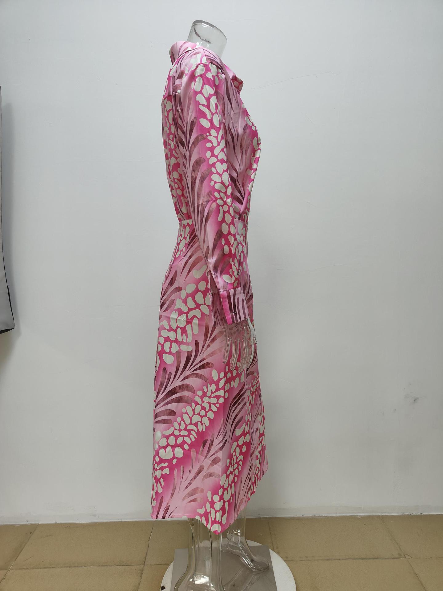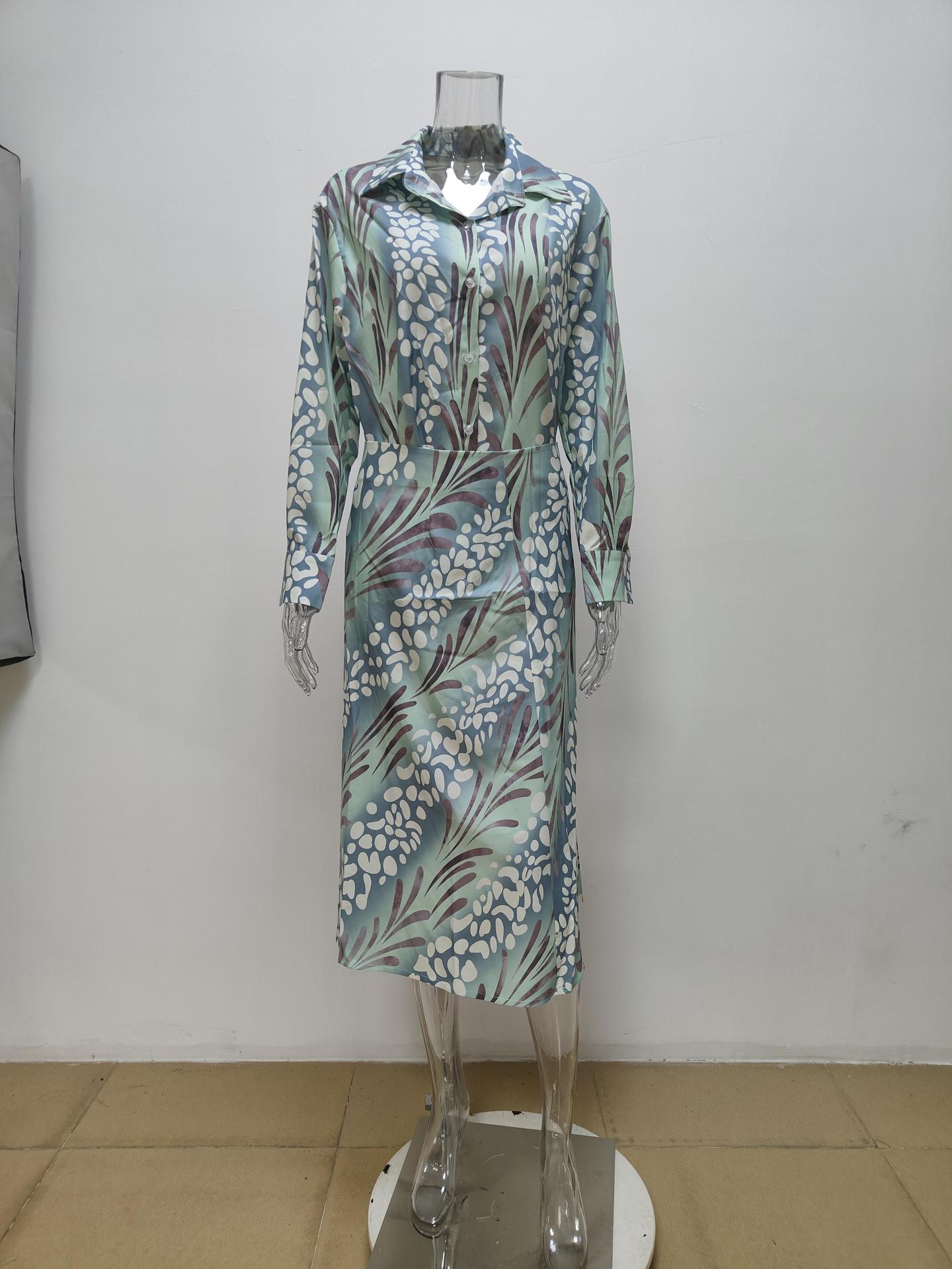 2024 여름 독립 역 국경 새 여성 인쇄 우아한 옷깃 긴 소매 셔츠 높은 허리 원피스 세트