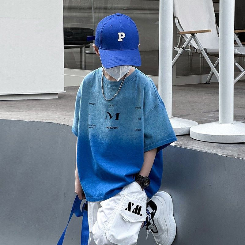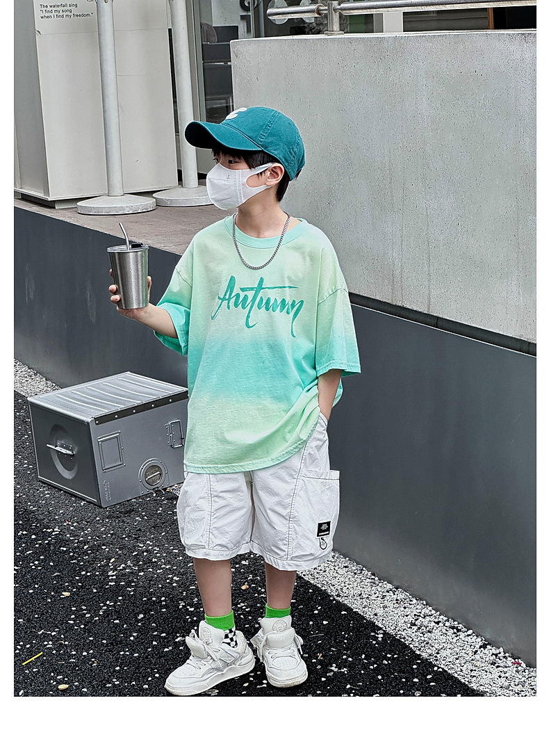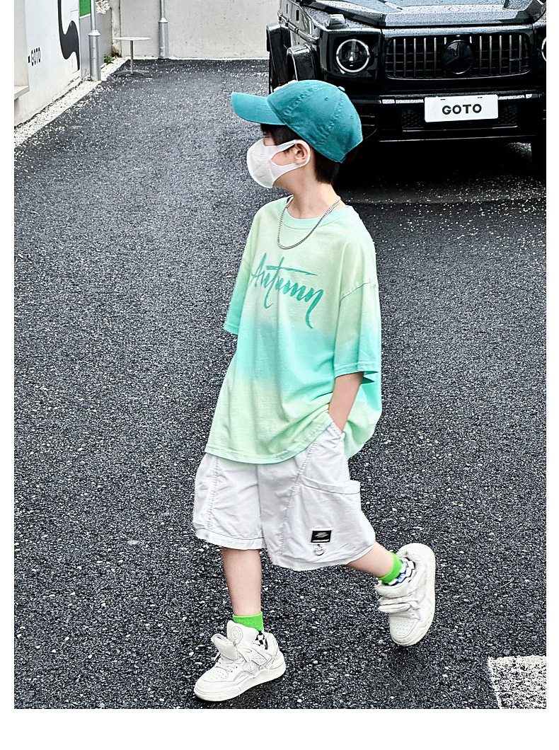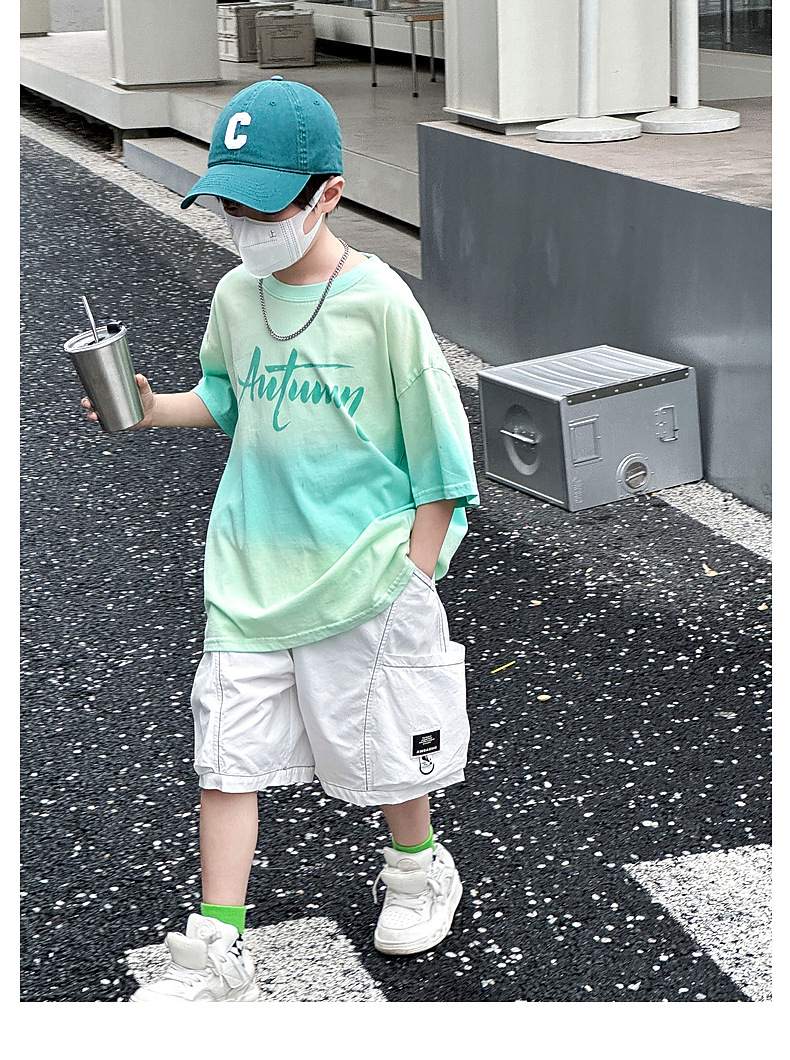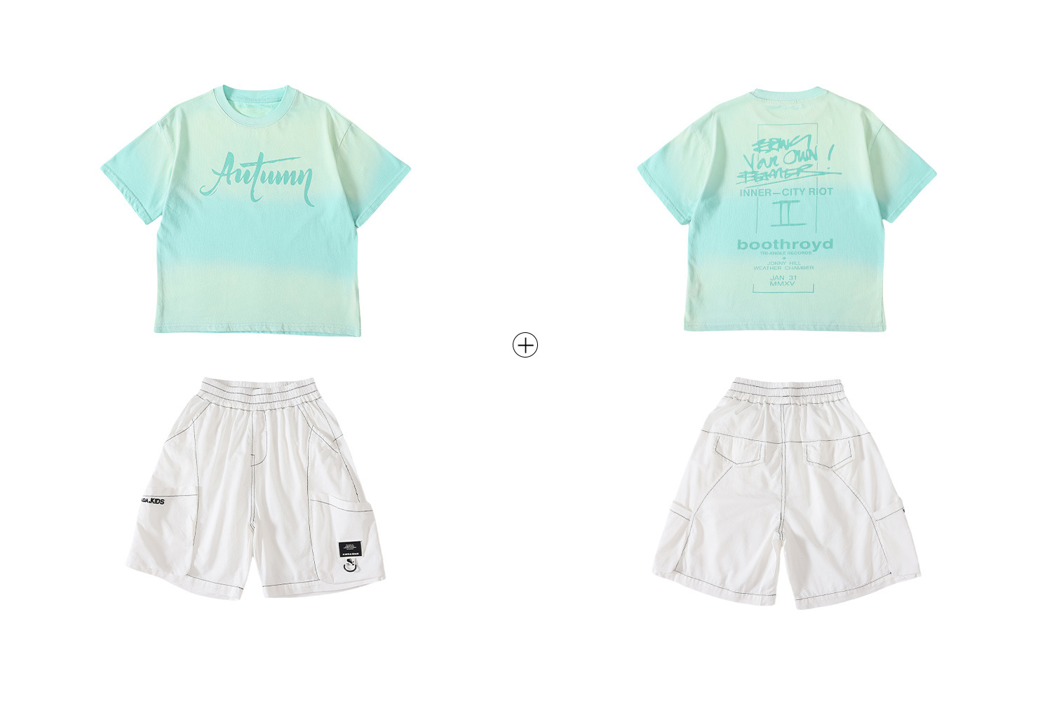 판다 Yuanyuan Gradual Tie-Dye Boys 반팔 세트 Huzhou Zhili 아동복 여름 새 어린이 여름복 투피스 세트