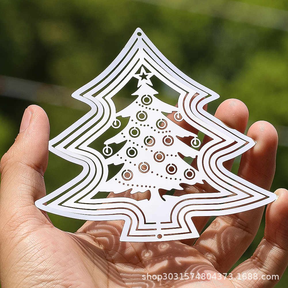 소용돌이 크리스마스 트리 스테인레스 스틸 3D 만다라 회전 바람 차임 야외 정원 장식 독립 역 공급