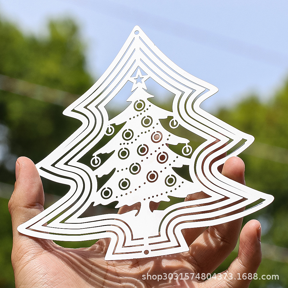 소용돌이 크리스마스 트리 스테인레스 스틸 3D 만다라 회전 바람 차임 야외 정원 장식 독립 역 공급스토어 가기
