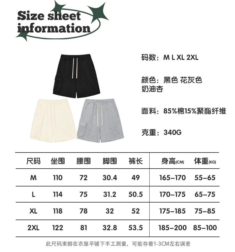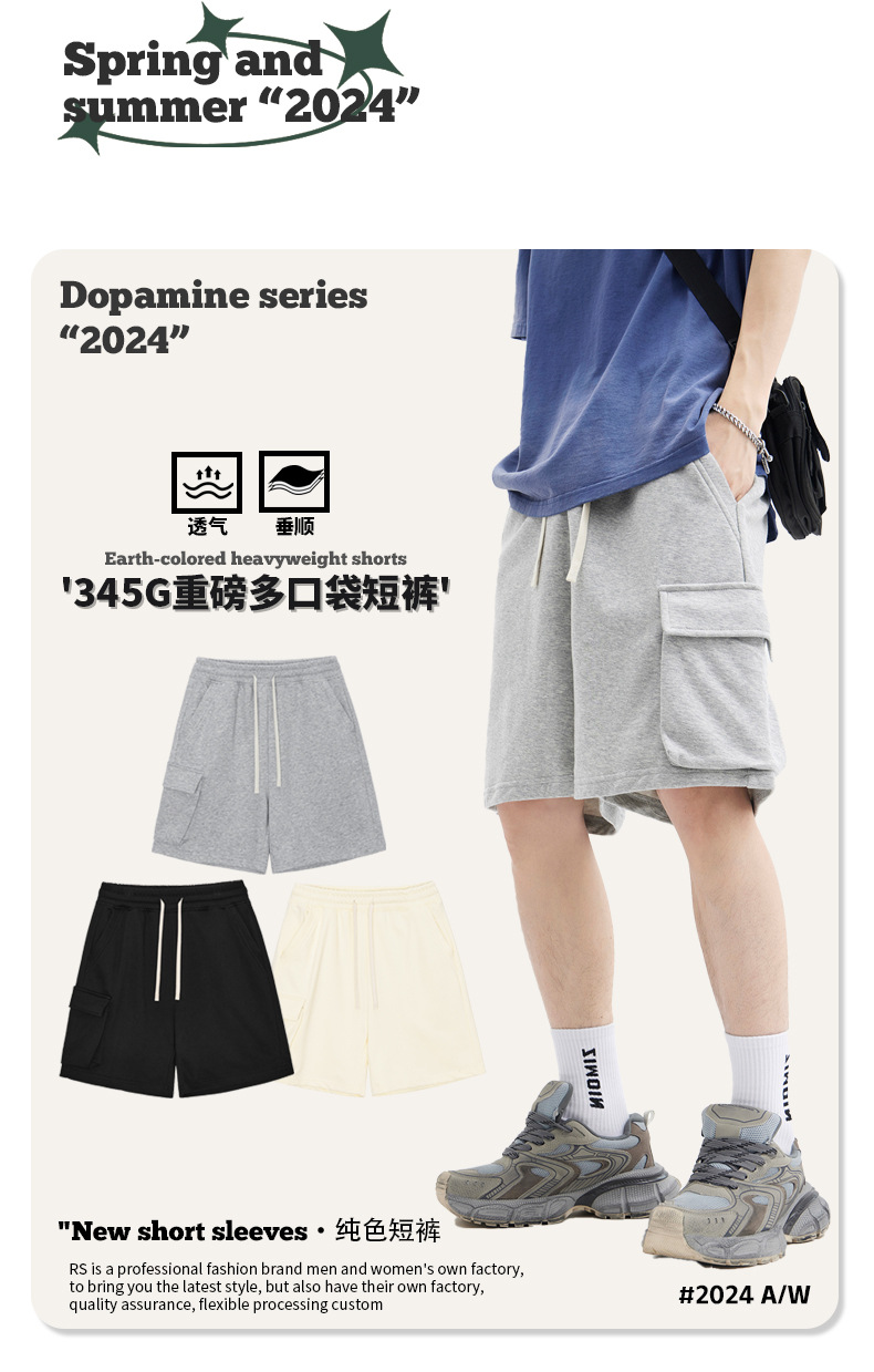 RS 남성복 | 340G 헤비웨이트 캐주얼 포켓 반바지 루즈핏 아메리칸 스타일 남성 반바지