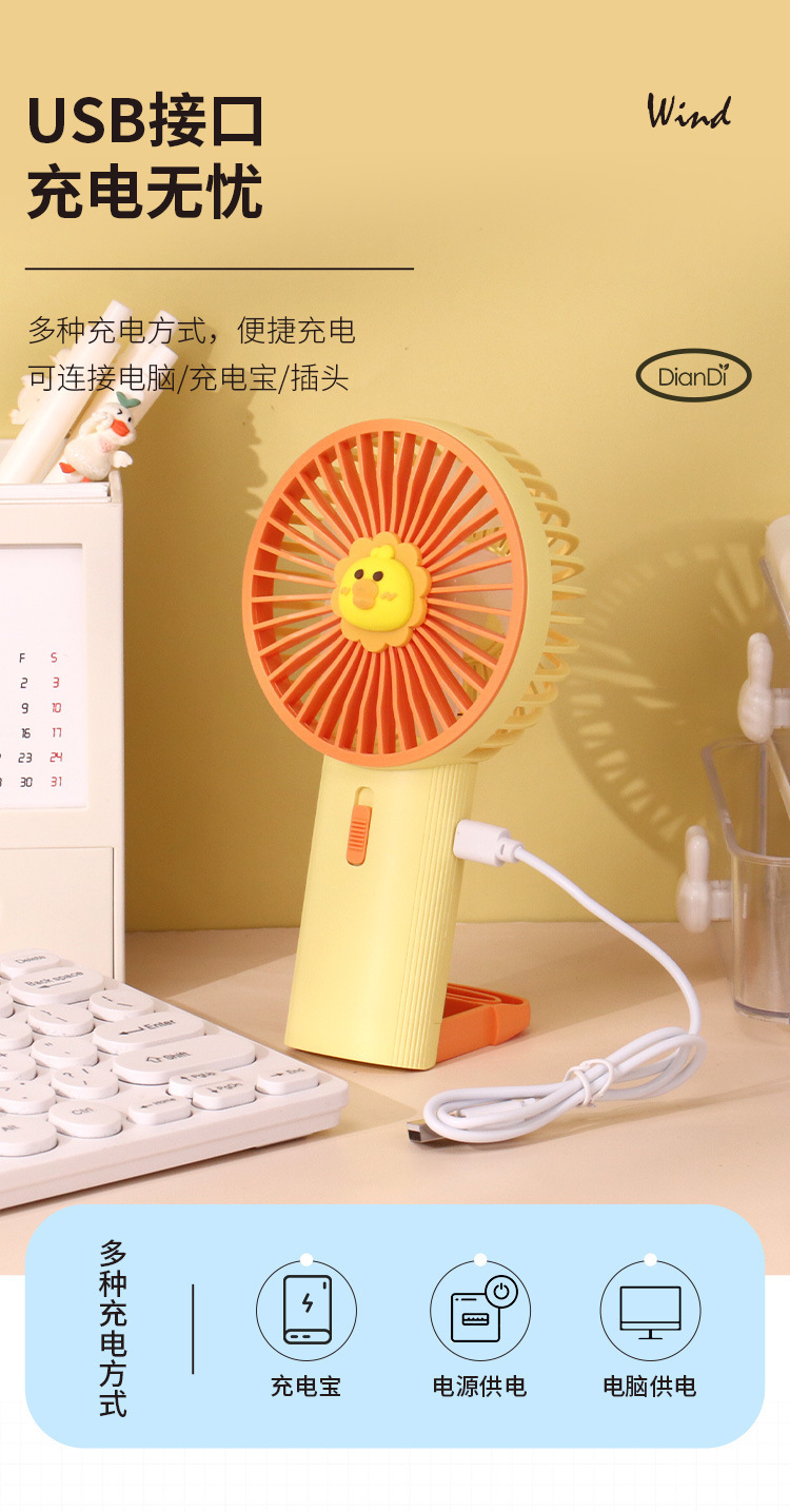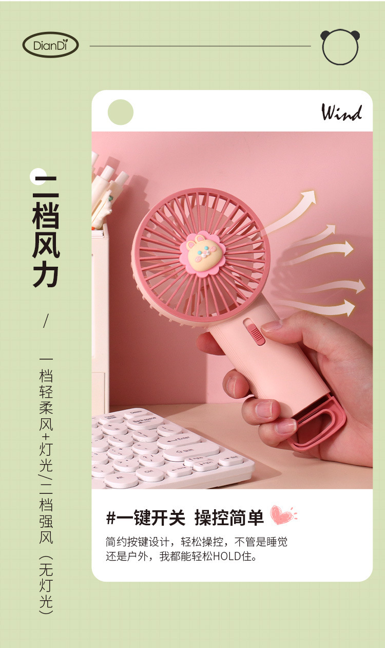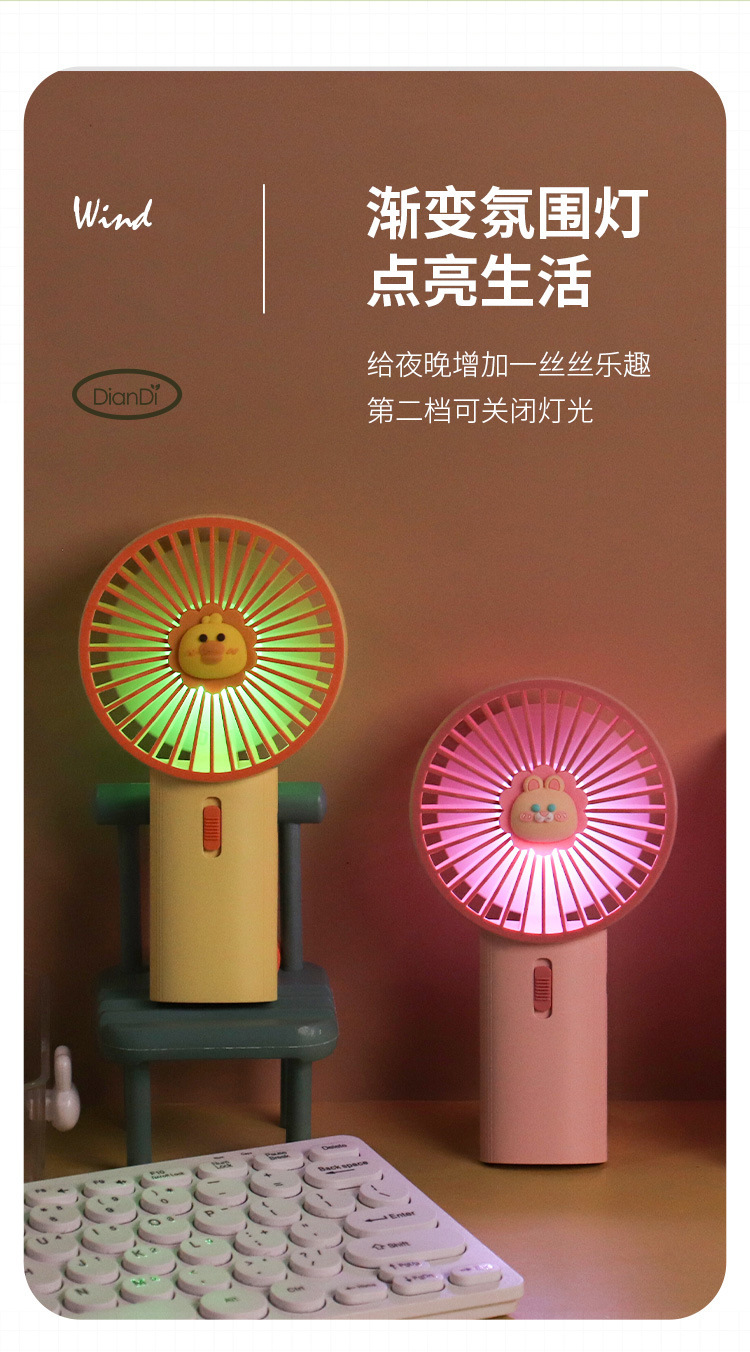 유행 간단한 개폐식 후크 기본 데스크탑 작은 팬 색상 그라디언트 LED 분위기 빛 핸드 헬드 팬