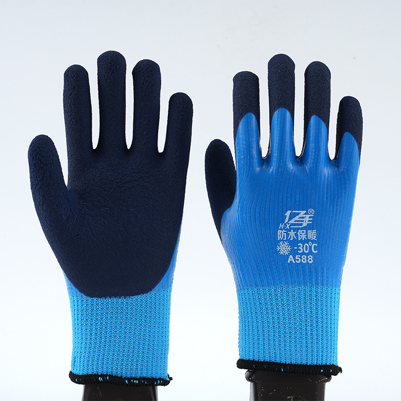 2 색 남성과 여성의 사이트 작업 장갑 두꺼운 라텍스 주름진 노동 보호 장갑 면화 방수 미끄럼 방지 마모 방지