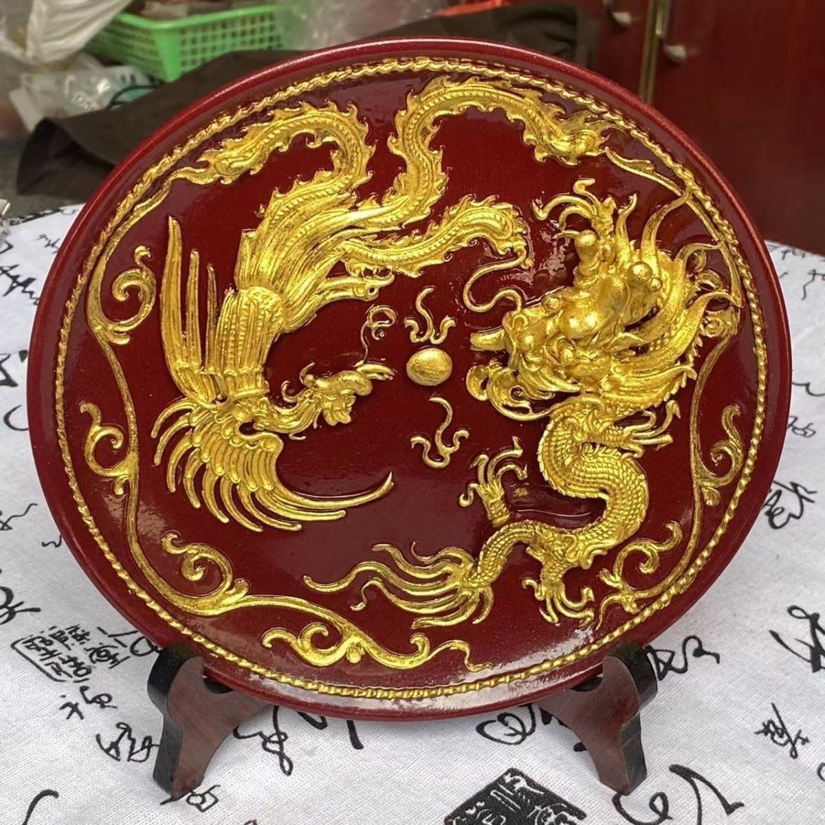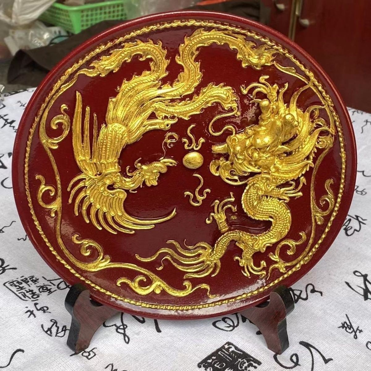 Cinnabar Zijin 거실 현관 장식 집들이 공예 선물 데스크탑 용 및 피닉스 접시 장식품스토어 가기