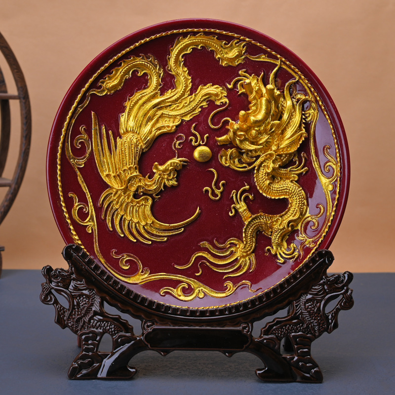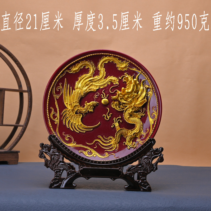 Cinnabar Zijin 거실 현관 장식 집들이 공예 선물 데스크탑 용 및 피닉스 접시 장식품