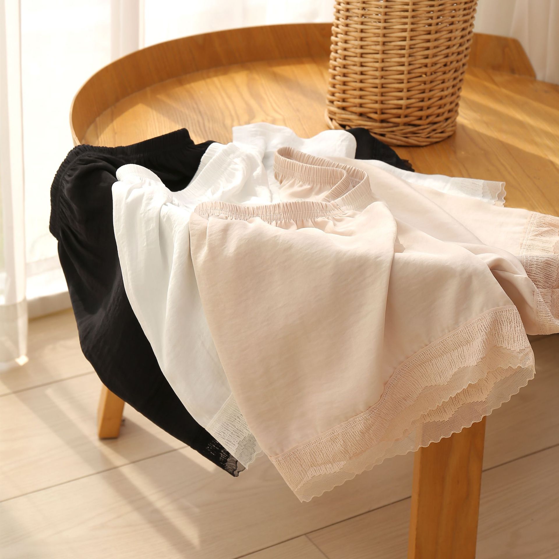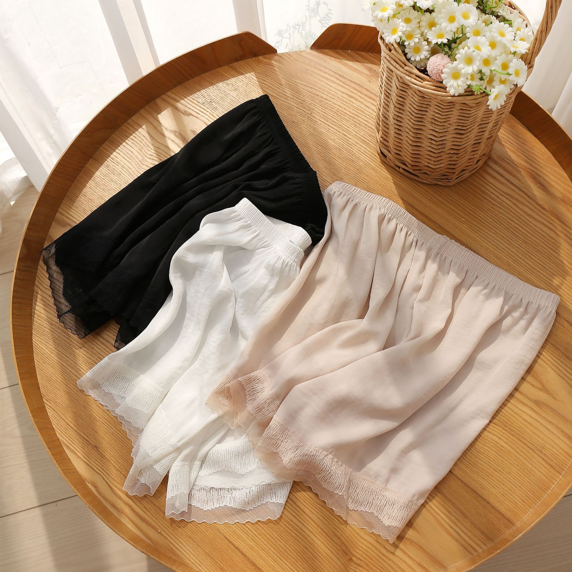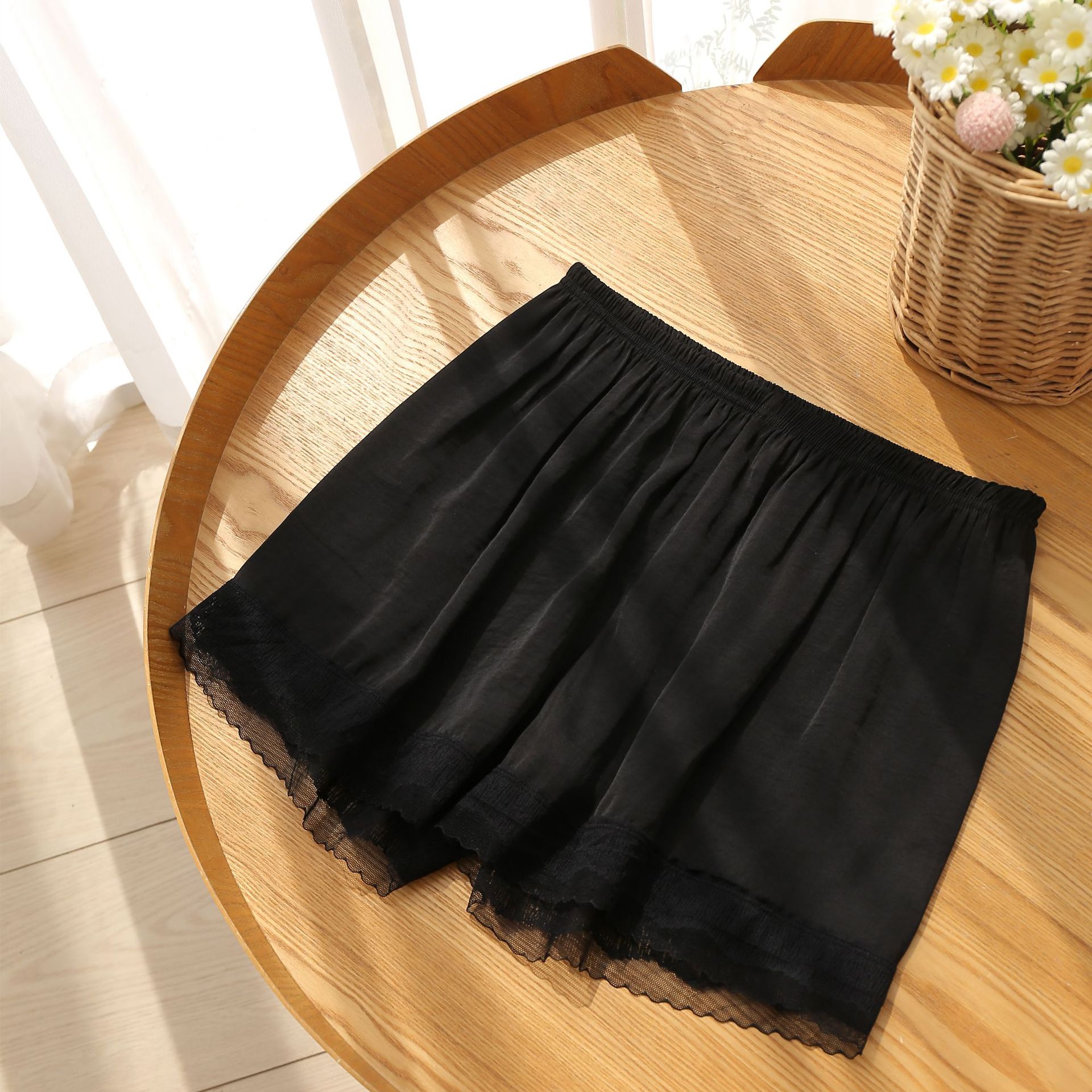 여름 바다 섬 실크베이스 안티 러닝 안전 바지 여성용 레이스 얇은 외부 착용 대형 느슨한 3 점 보험 반바지스토어 가기