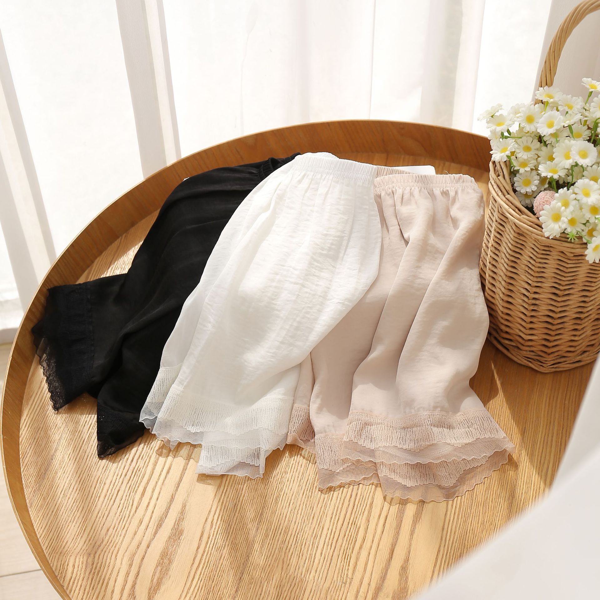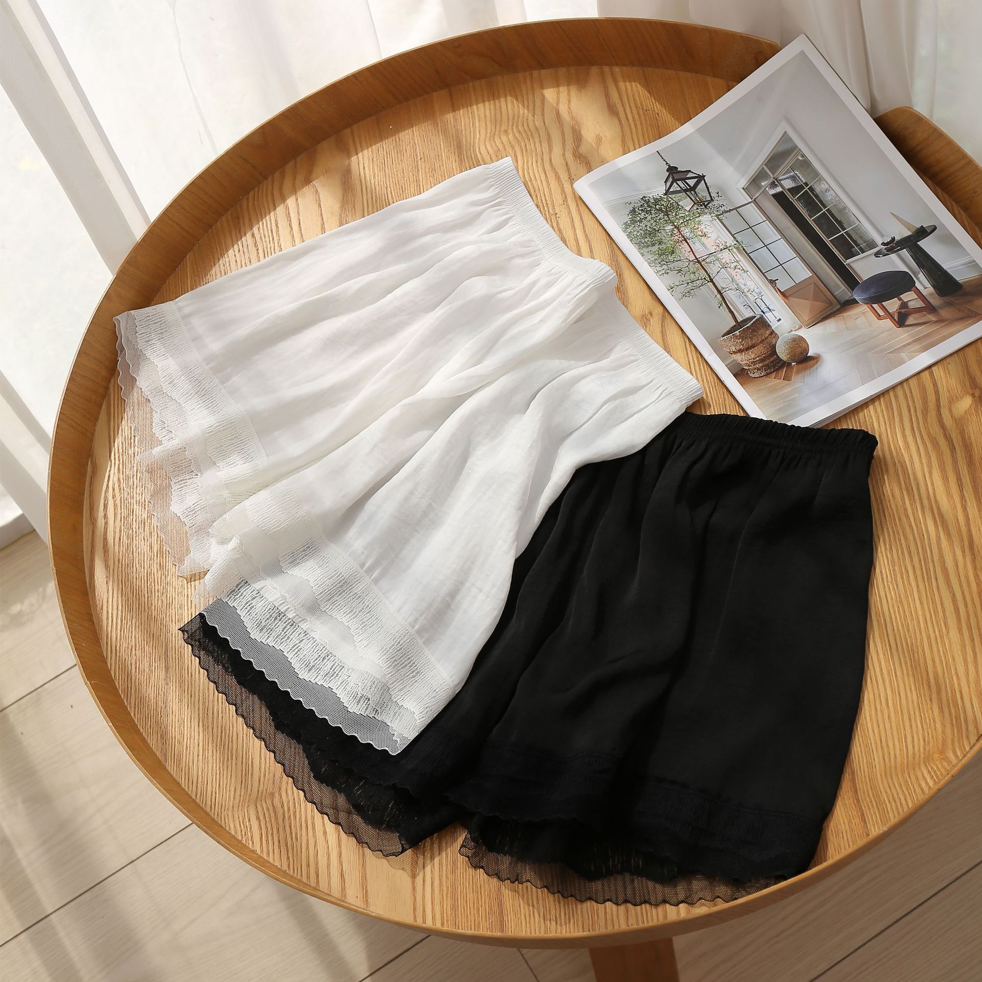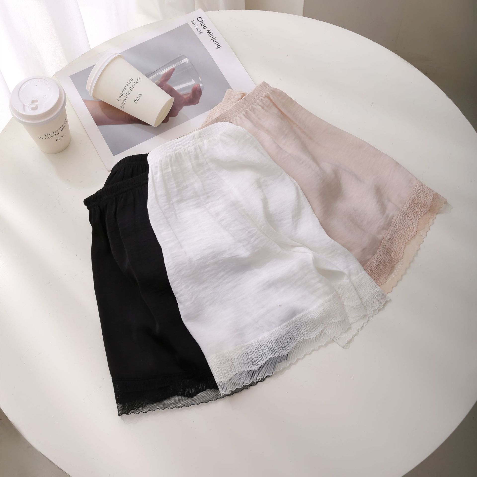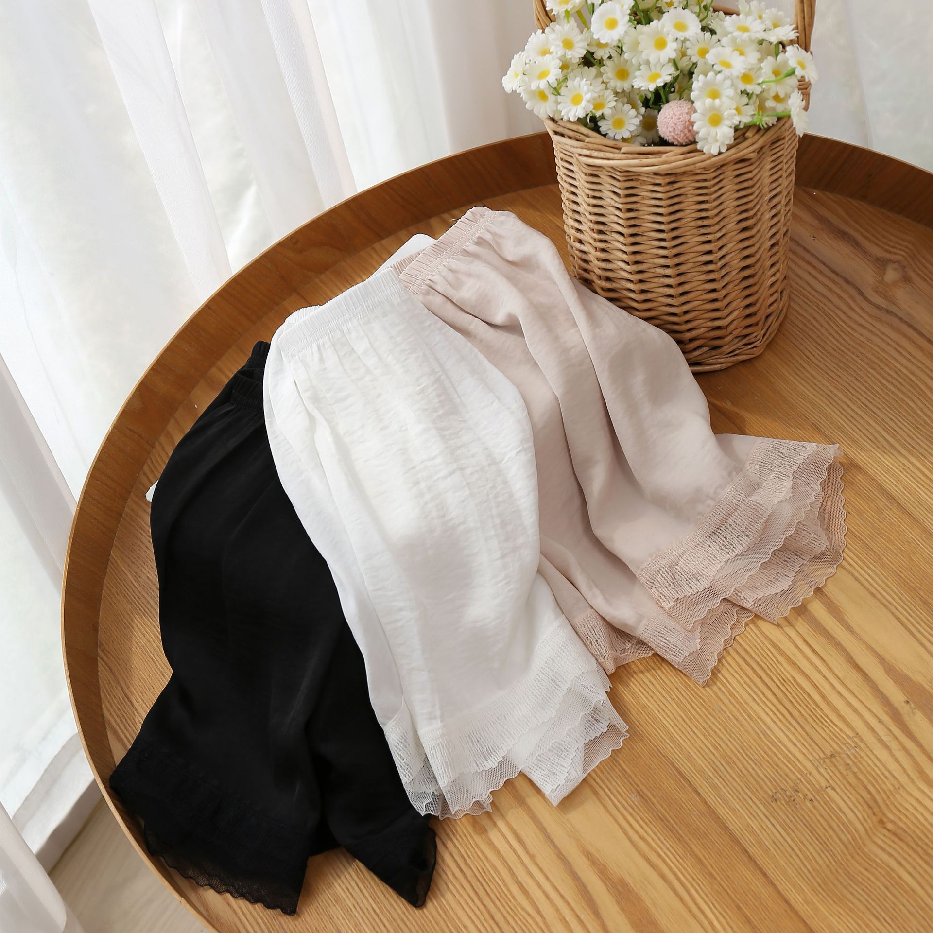 여름 바다 섬 실크베이스 안티 러닝 안전 바지 여성용 레이스 얇은 외부 착용 대형 느슨한 3 점 보험 반바지스토어 가기