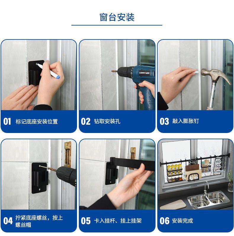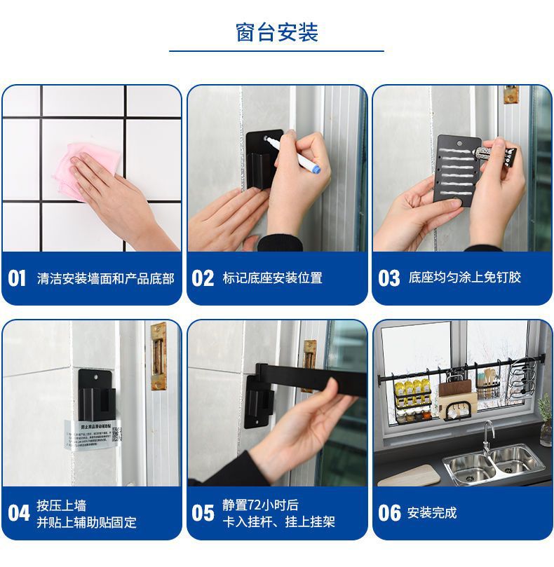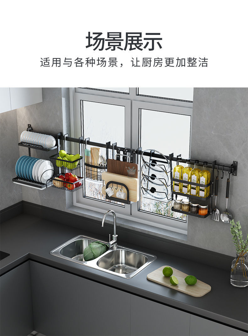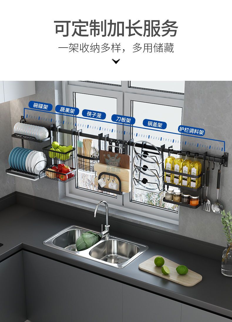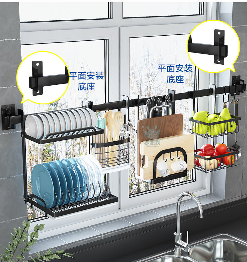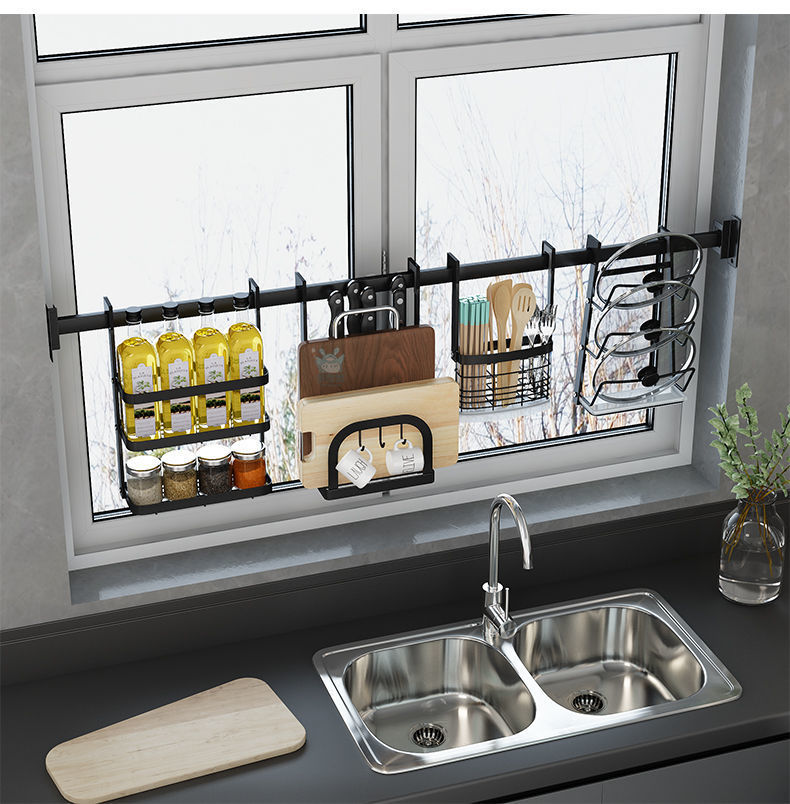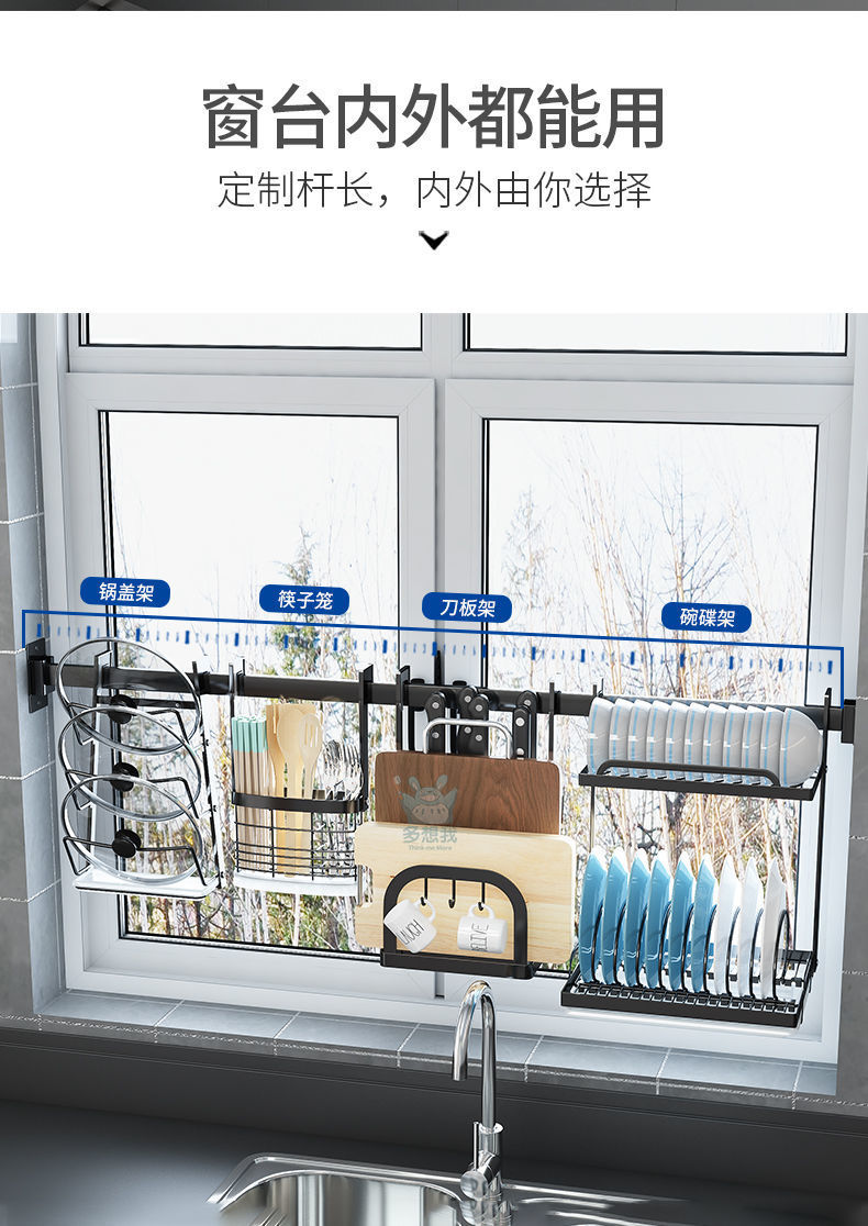 주방 창틀 선반 벽걸이 비 천공 스테인레스 스틸 창 교수형로드 후크 젓가락 냄비 커버 칼 보관 랙