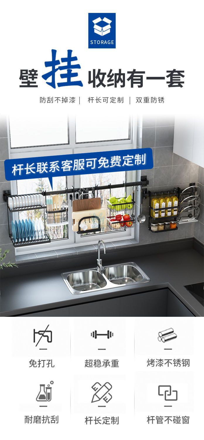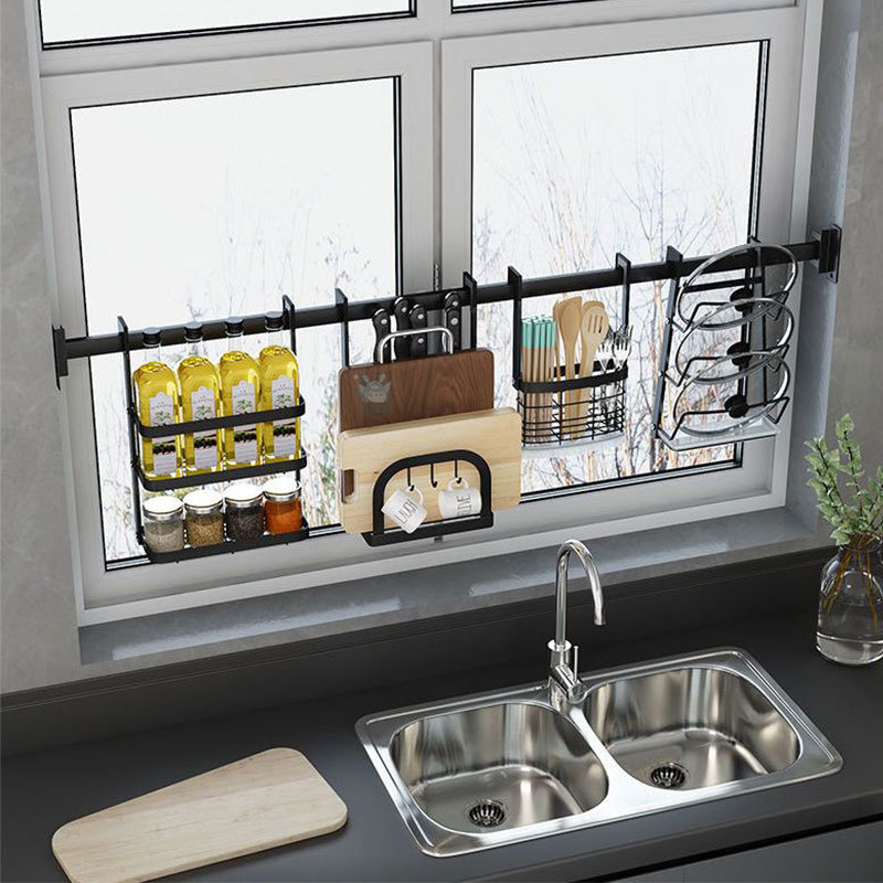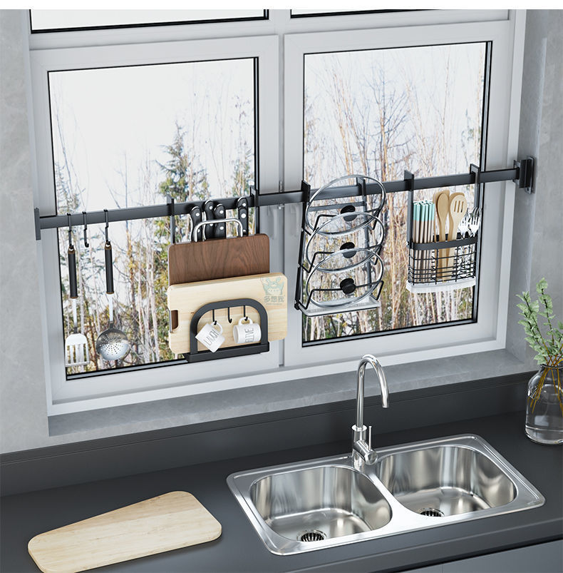 주방 창틀 선반 벽걸이 비 천공 스테인레스 스틸 창 교수형로드 후크 젓가락 냄비 커버 칼 보관 랙스토어 가기