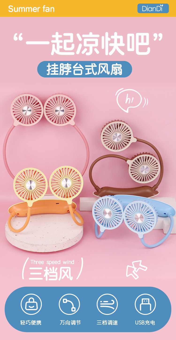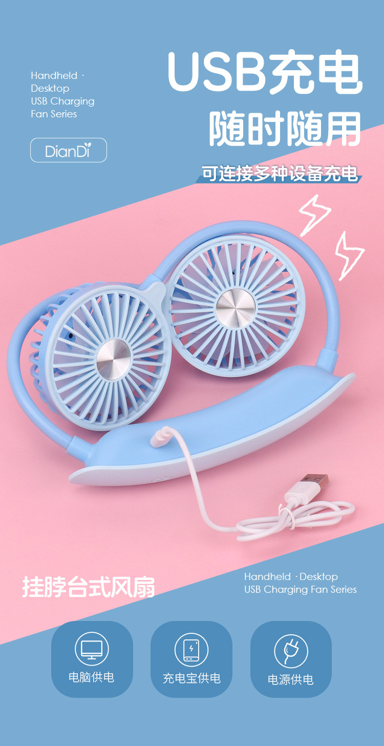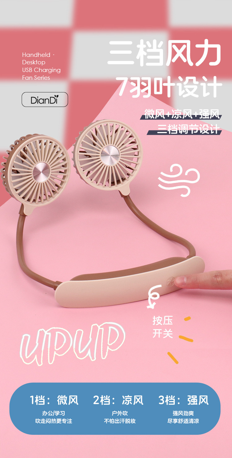 긴 지구력 게으른 야외 휴대용 미니 팬 인쇄 로고 선물 국경 간 팬 USB 충전