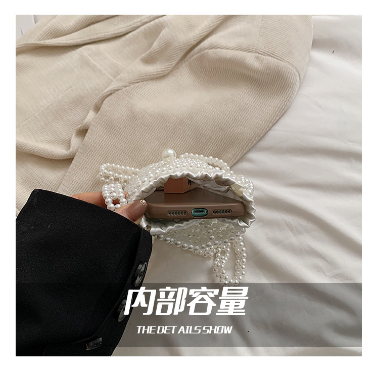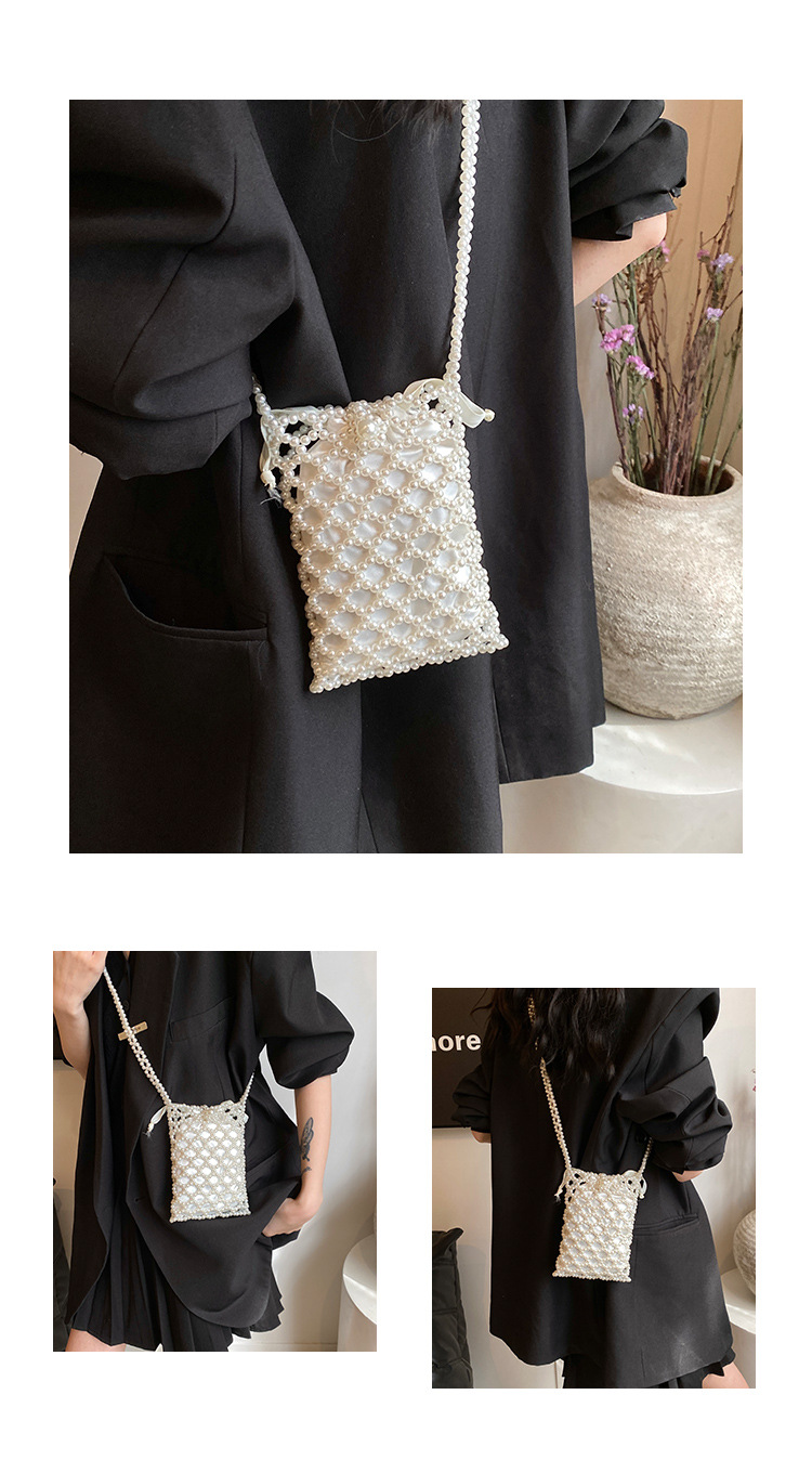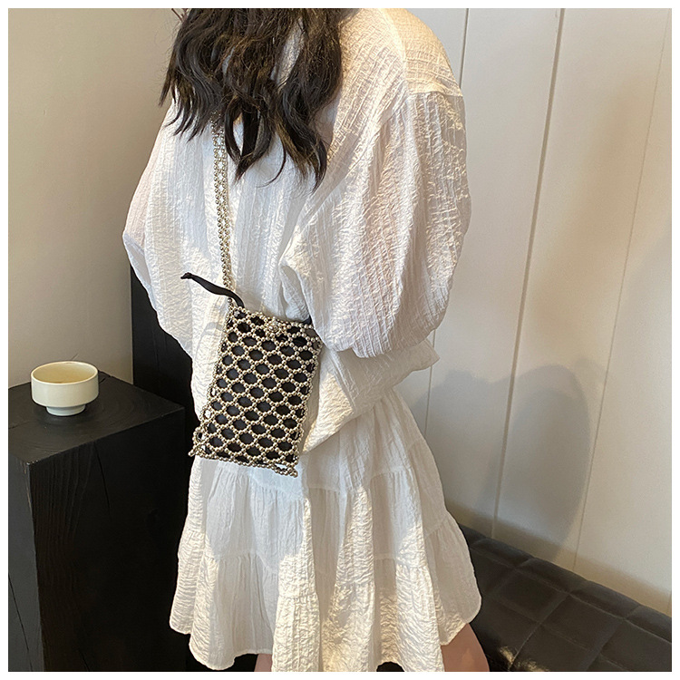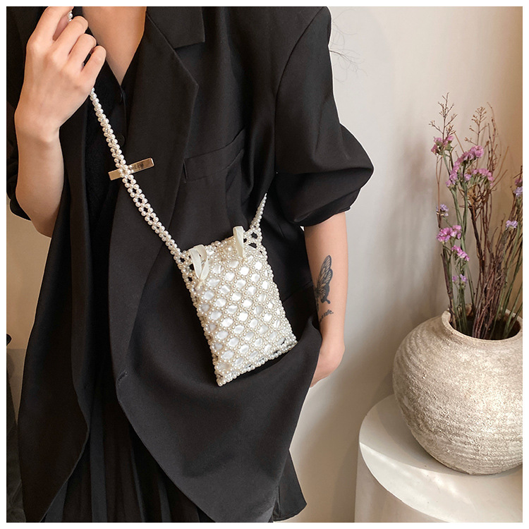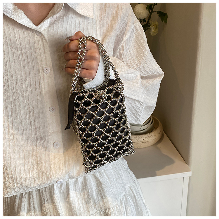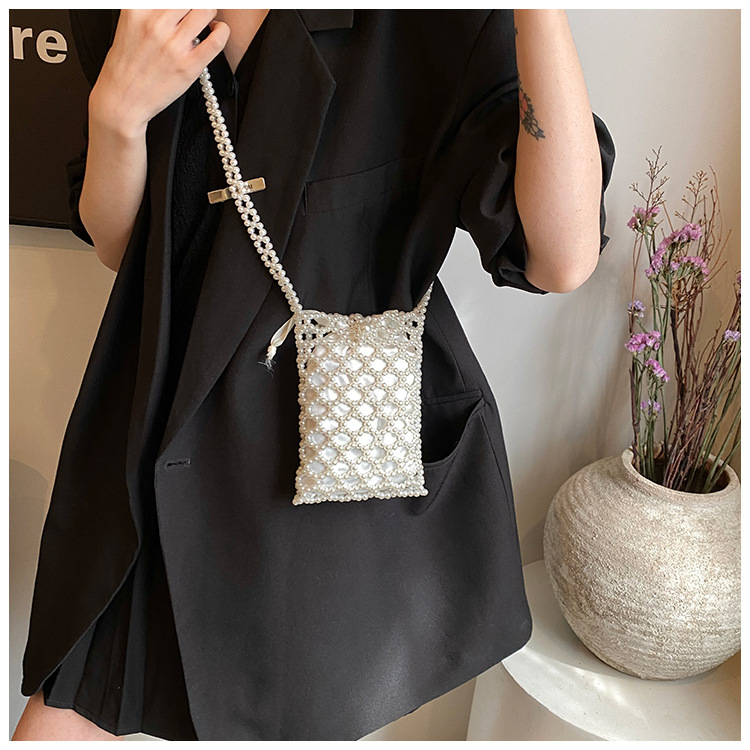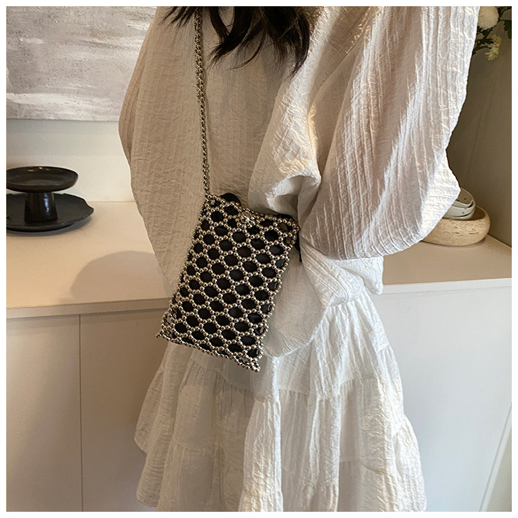 샤오홍슈 레이저 펄 백 2025 신상품 다이아몬드 패턴 핸드폰 가방 소녀스러운 비즈 여성 가방 수제 비치백