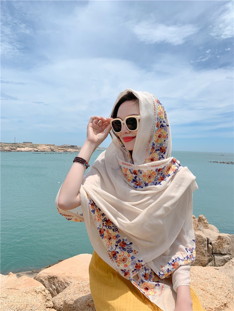 봄과 여름 자수 민족 스타일 스카프 그레이트 노스 웨스트 차카 솔트 레이크 목도리 여성의 이중 사용 실크 스카프 여행 사진 Lijiang스토어 가기