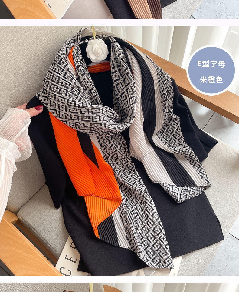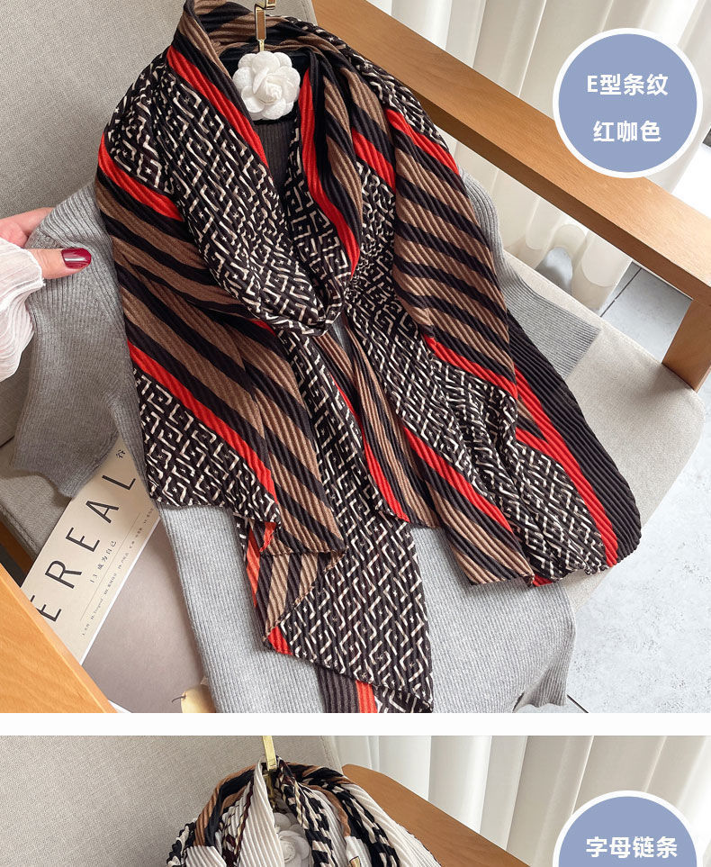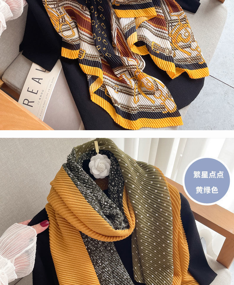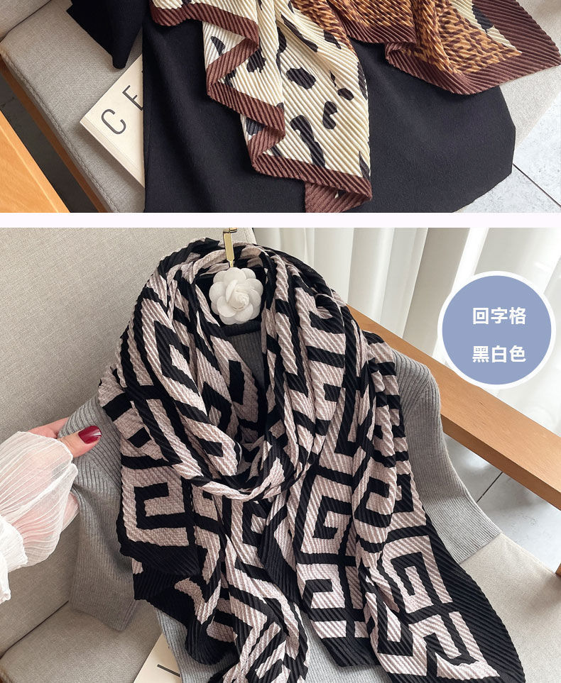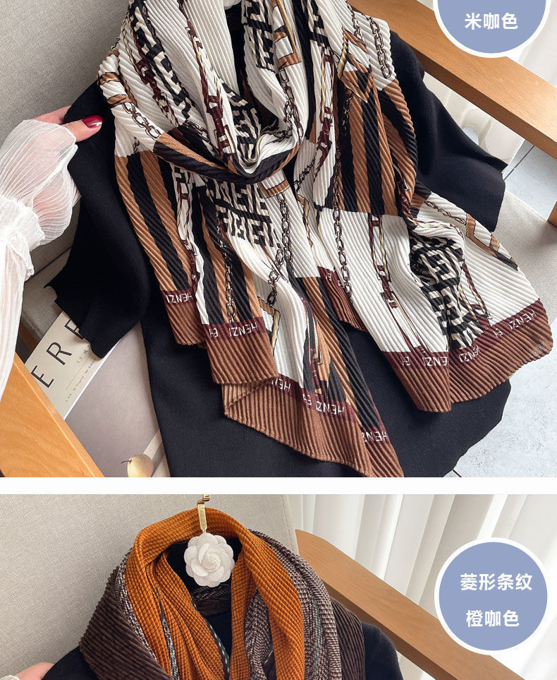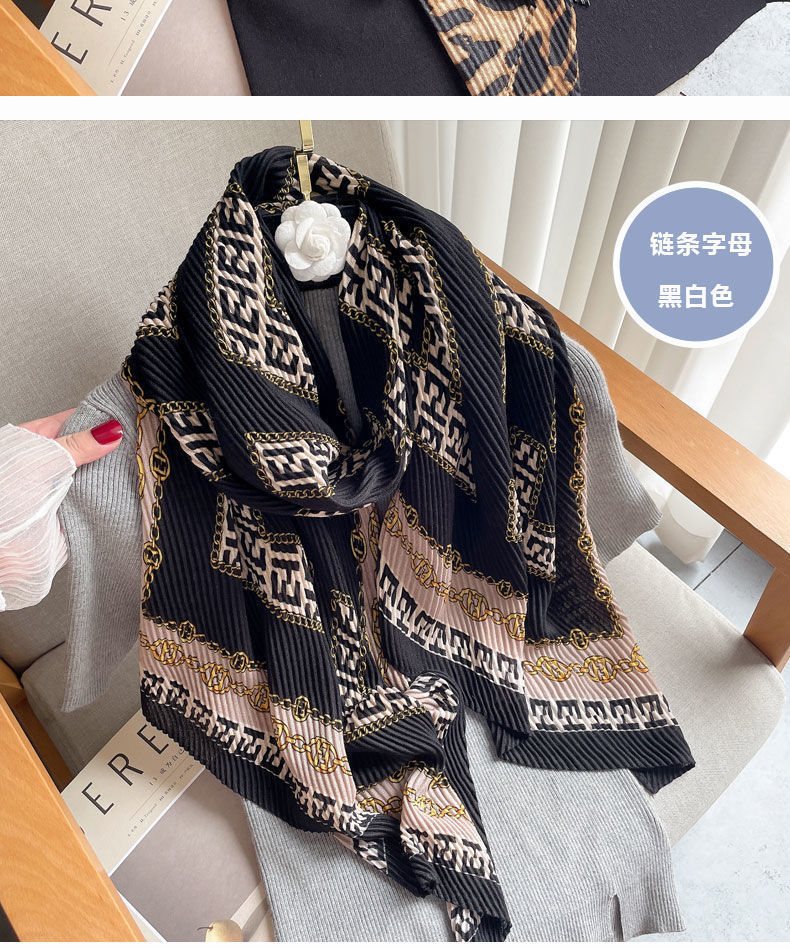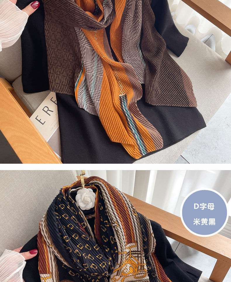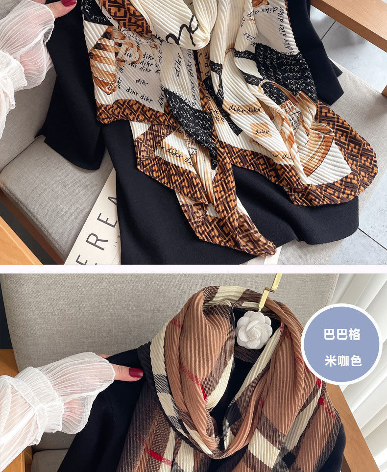 인터넷 연예인 새 스타일 구겨진 스카프와 리넨 긴 스카프 여성 한국 스타일 유행 서양식 대형 목도리 이중 목적 인쇄 주름 스카프스토어 가기