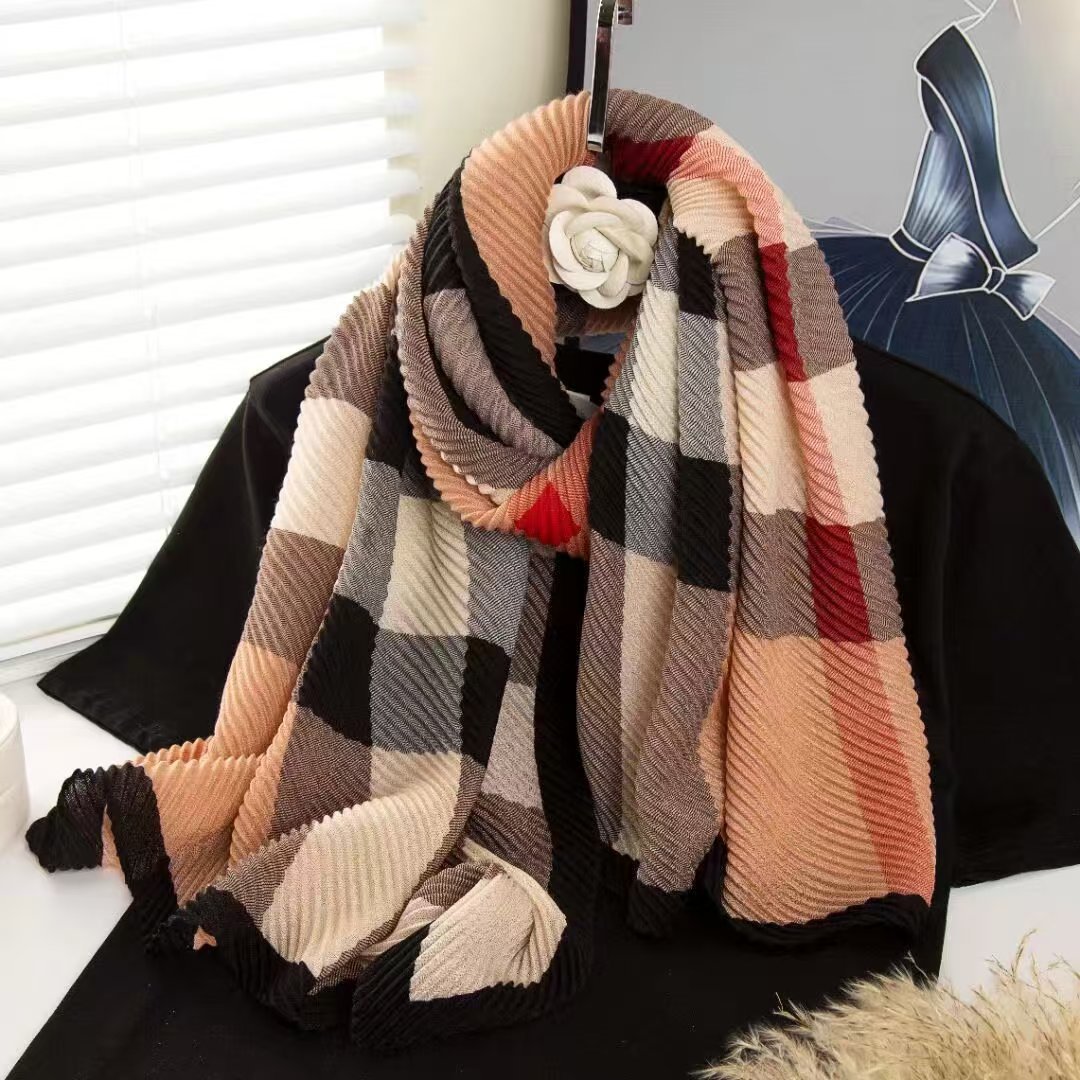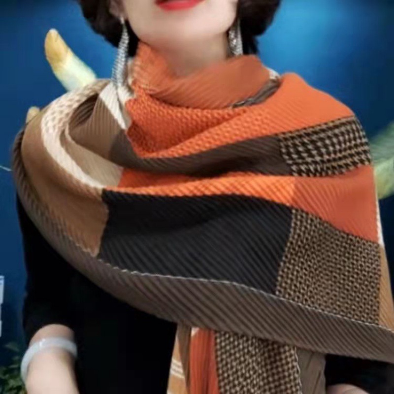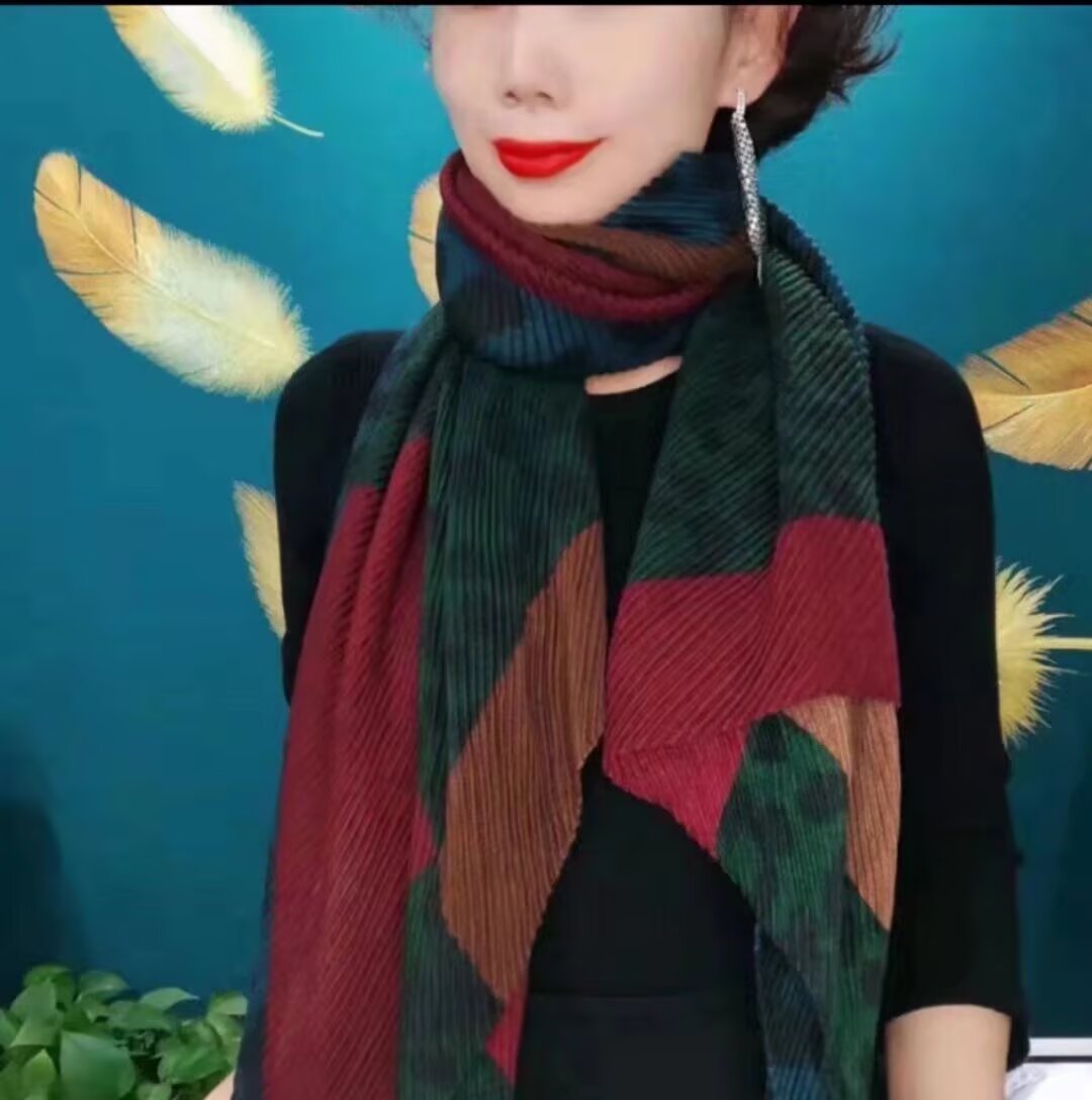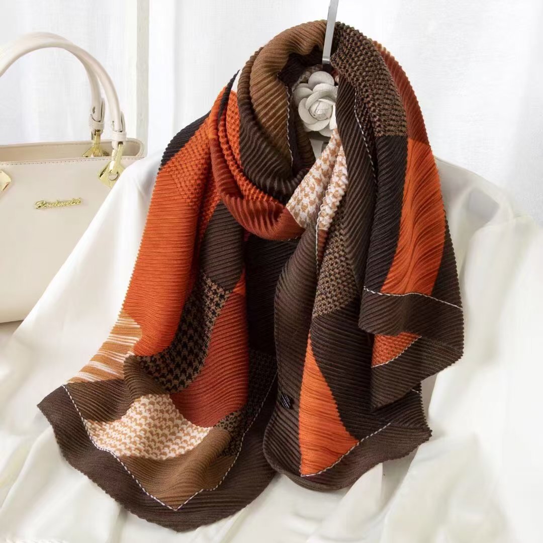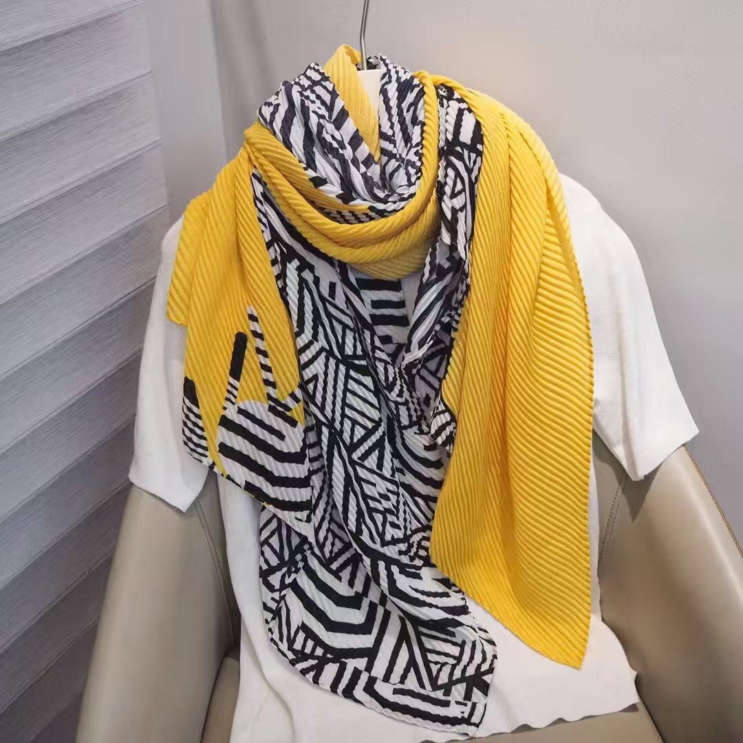 인터넷 연예인 새 스타일 구겨진 스카프와 리넨 긴 스카프 여성 한국 스타일 유행 서양식 대형 목도리 이중 목적 인쇄 주름 스카프스토어 가기