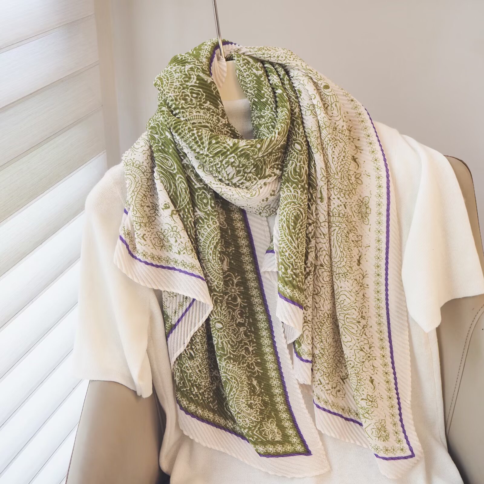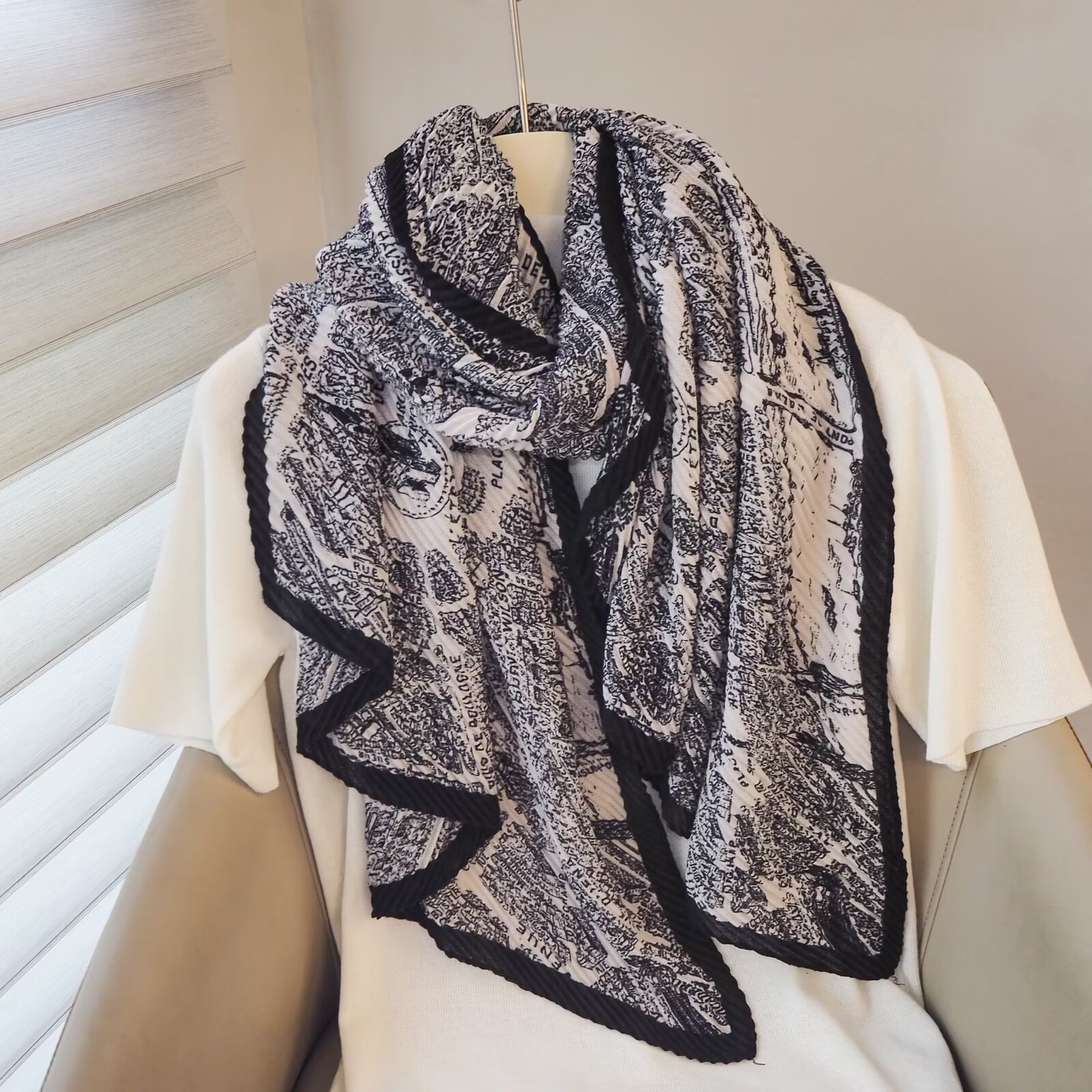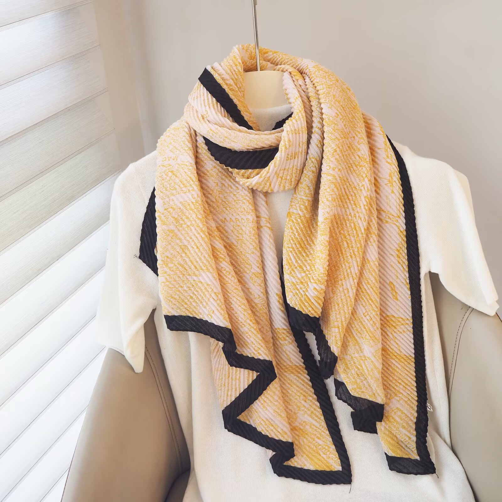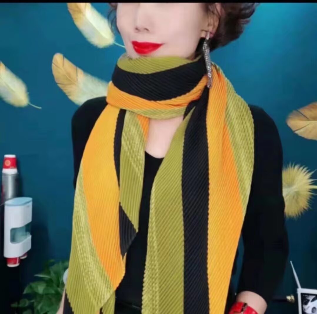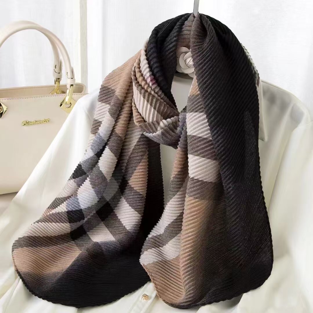 인터넷 연예인 새 스타일 구겨진 스카프와 리넨 긴 스카프 여성 한국 스타일 유행 서양식 대형 목도리 이중 목적 인쇄 주름 스카프스토어 가기